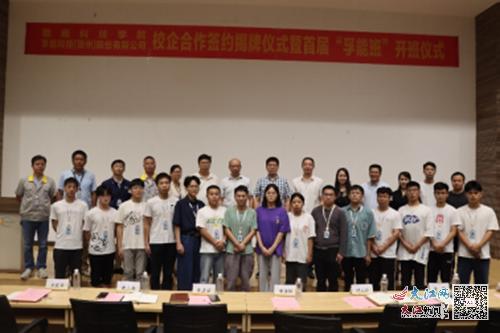 本网讯:为引导和促进更多赣科学子留赣服务经营主体、尽早实现就业,今年以来,赣南科技学院深入走访、深度调研本地企业,积极搭建校企合作平台,有序推进2023届学生到本地企业进行实习。暑期伊始,赣南科技学院与孚能科技(赣州)股份有限公司校企合作首届“孚能班”开班,“孚能班”15名学生在赣南科技学院过渡期管委会副主任邓亦林与孚能科技赣州基地总经理常彦学等校企双方领导见证下,采用“3+0.5+0.5”培养模式,进驻企业进行长学时实习实践。