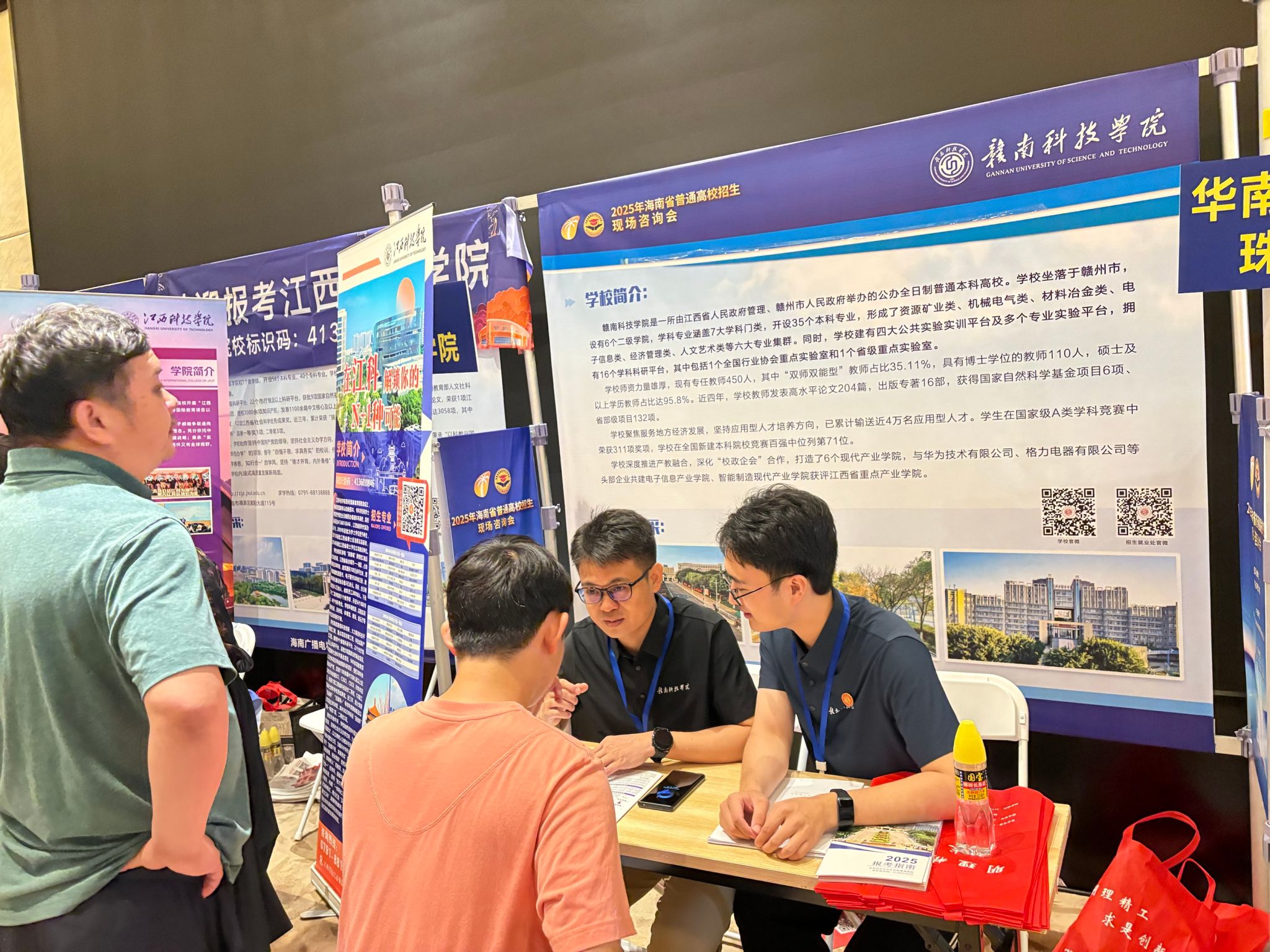 6月26日至27日,代表团参加了海南普通高校招生现场咨询会,活动分别在高招会现场及海口市第一中学开展。招生团队与考生、家长面对面交流,详细介绍赣南科技学院办学特色、专业设置、人才培养模式及就业方向,为考生提供“一站式”志愿填报指导。