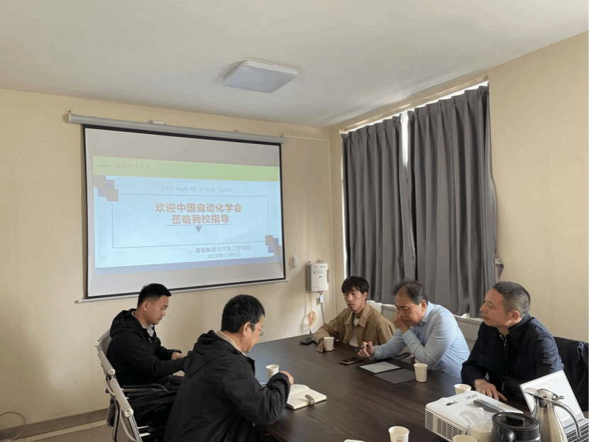 本网讯:11月9日,中国自动化学会副秘书长兼中国自动化学会竞赛培训部主任李实、竞赛培训部副主任姜萌、竞赛培训部秘书马明宇莅临我校指导。我校机电工程系主任刘辉,智能制造与机器人教研室刘祚时教授及相关老师一同开展交流研讨。