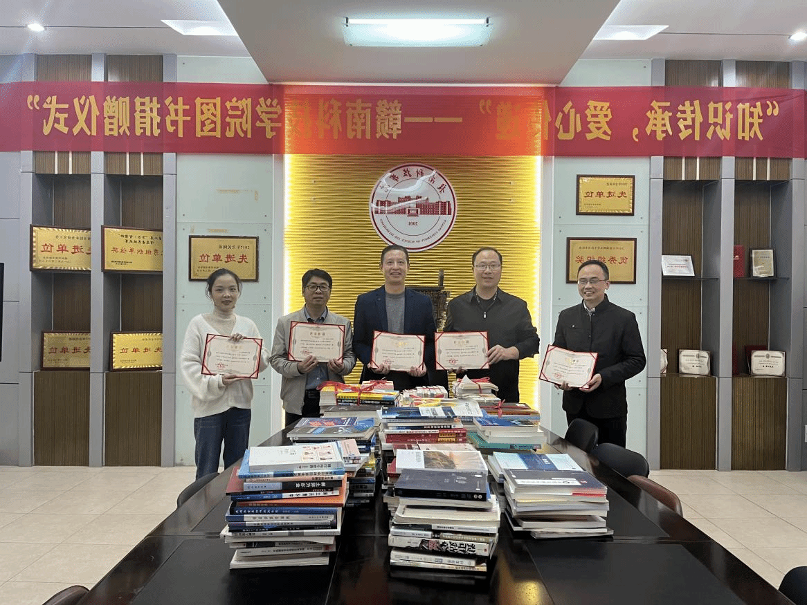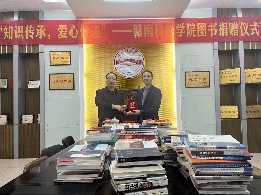本网讯:为响应“同心关爱赣科,共建书香校园——图书捐赠活动”,2023年11月21日星期二下午16:30分,机电工程系在校图书馆会议室举行“知识传承,爱心传递”--赣南科技学院图书捐赠仪式活动。