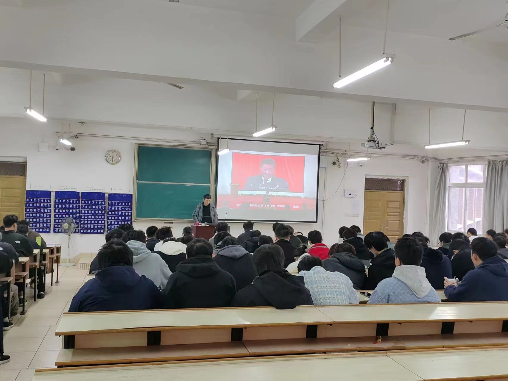 12月4日上午,机电工程系在崇善楼2D3组织学生参加国家宪法日教育系统“宪法晨读”活动。共有学生代表一百余人参与活动。
