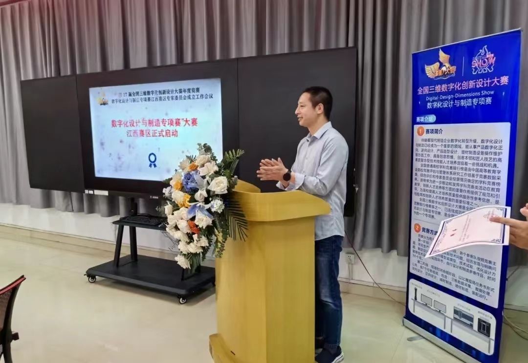 我校智能制造与材料工程学院刘辉担任数字化设计与制造专项赛专委会副总裁判长,并在会上宣布数字化设计与制造专项赛正式启动。