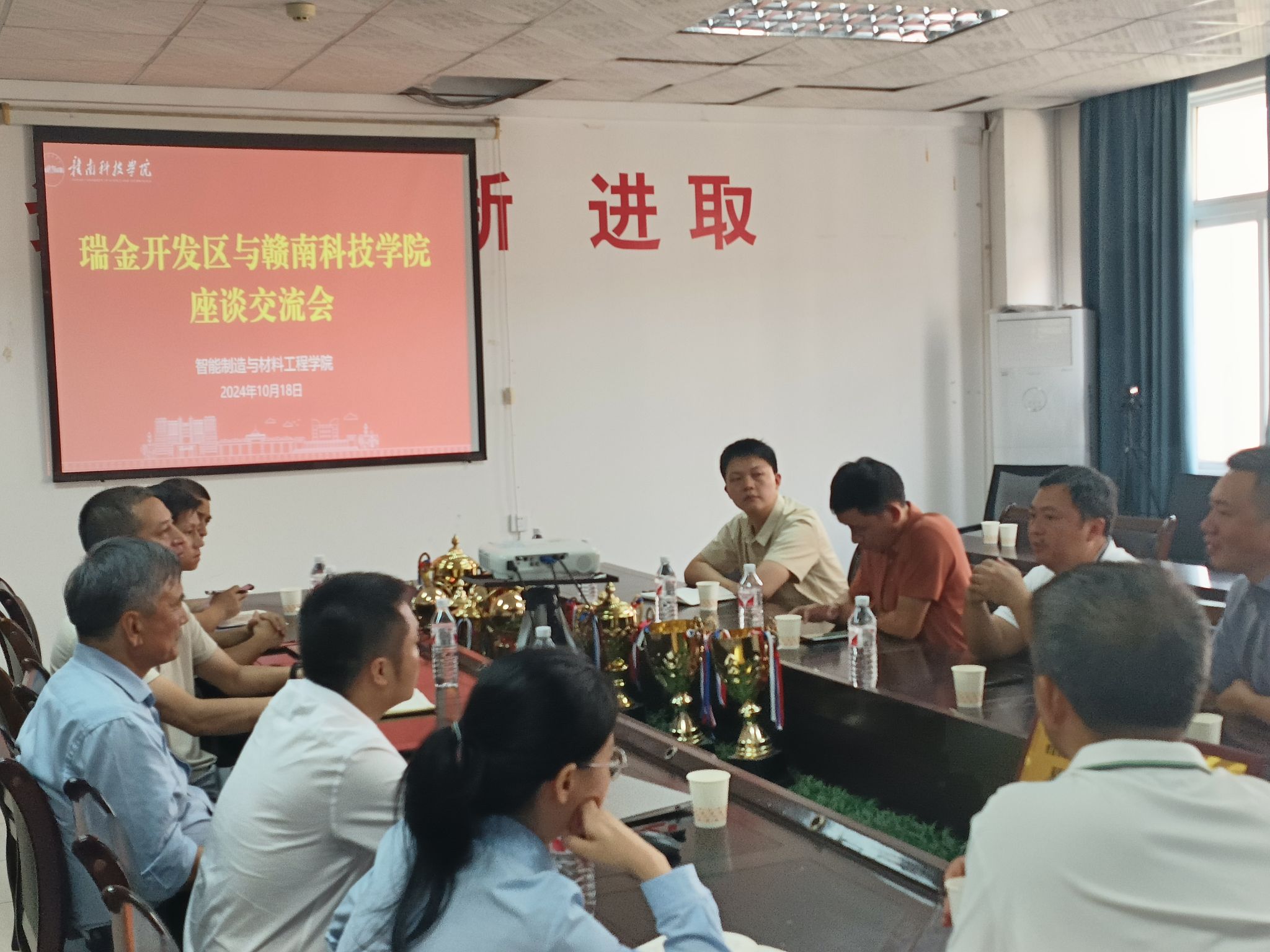 本网讯:10月18日下午,瑞金市经开区党工委委员、管委会副主任林浩一行来校调研交流,我校智能制造与材料工程学院副院长刘辉、学校特聘教授王德伦会见林浩一行并在91精品无码S416会议室召开座谈会。
