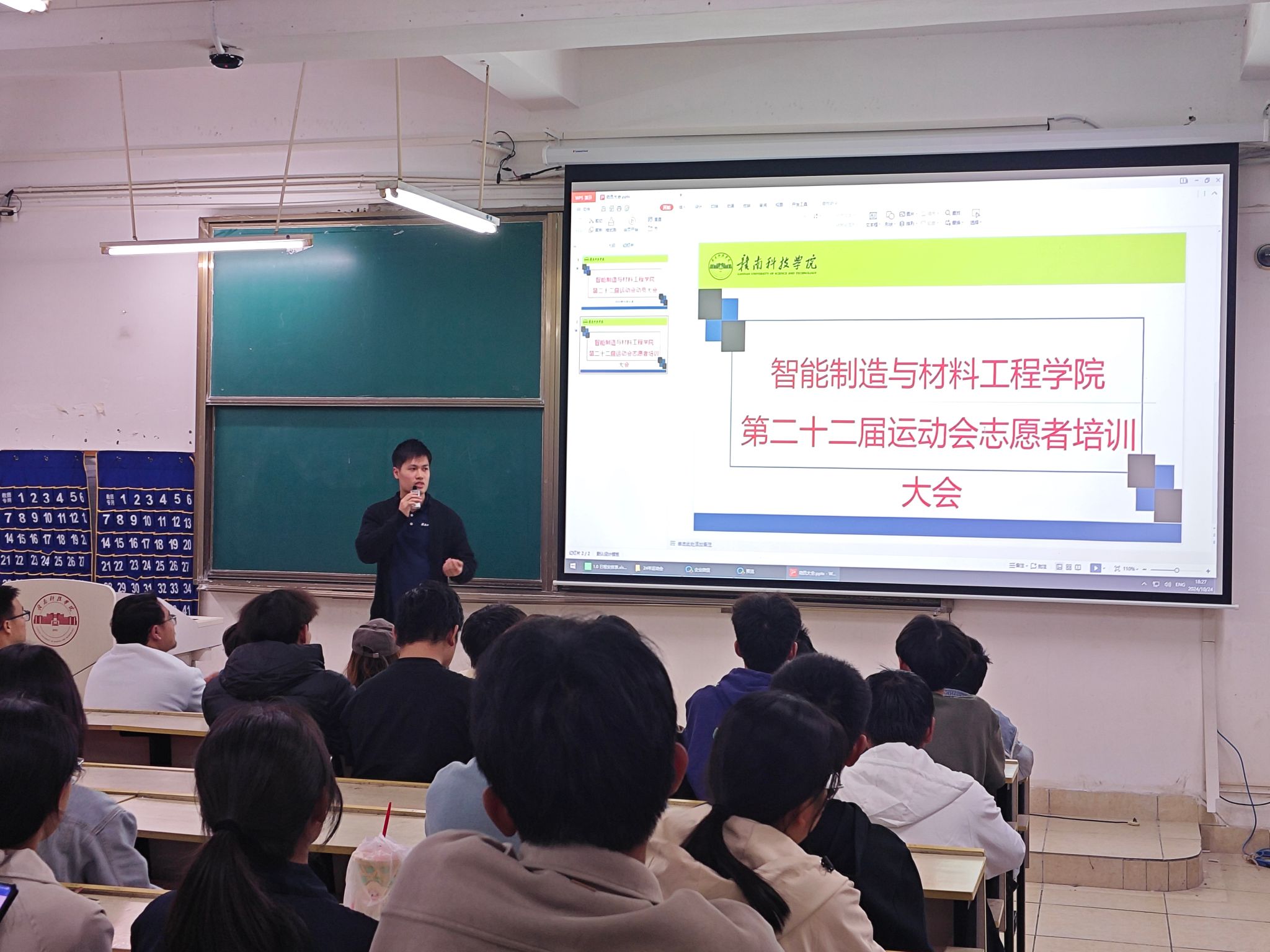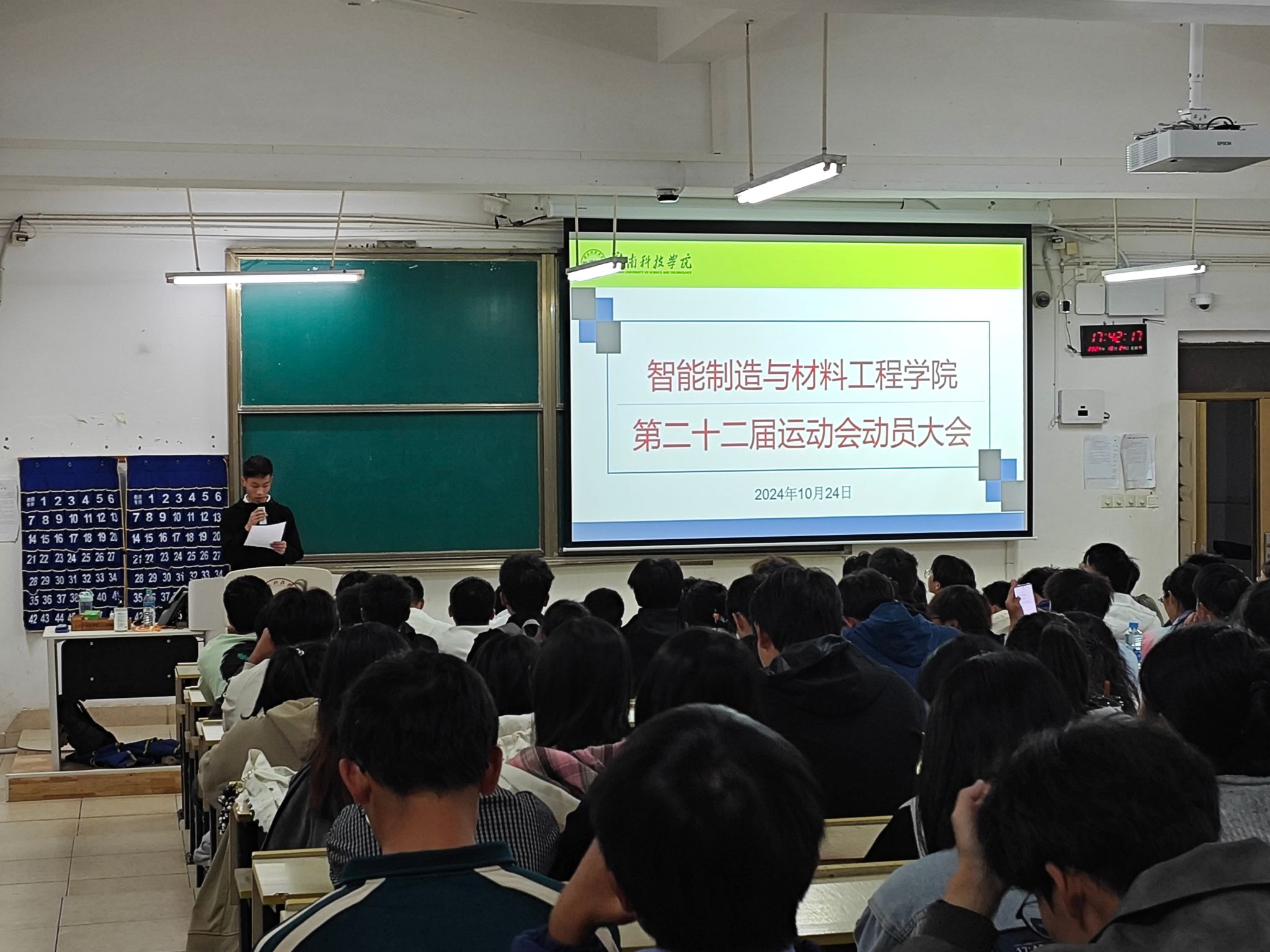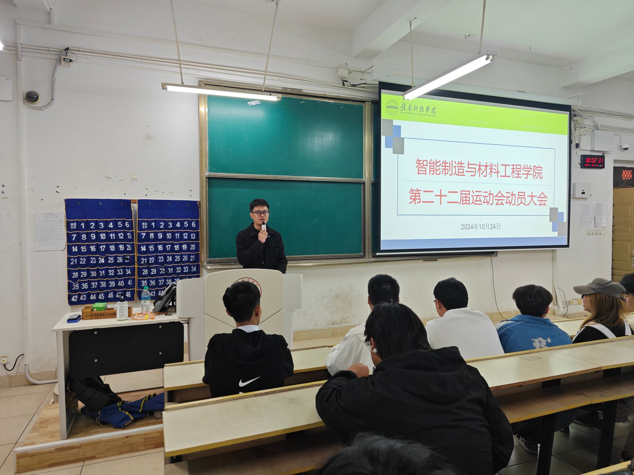 本网讯:为备战我校第二十二届运动会,点燃运动员们的激情。10月24日晚,智能制造与材料工程学院于崇善楼Z2D1召开第二十二届运动会动员大会。91精品无码学工负责人肖志华、团委负责人卢名亮、全体辅导员、全体运动员、学生会全体成员、班助全体成员、所有新生班级班长和团支书、党支部学生负责人、志愿者服务队队长参加了这场会议。