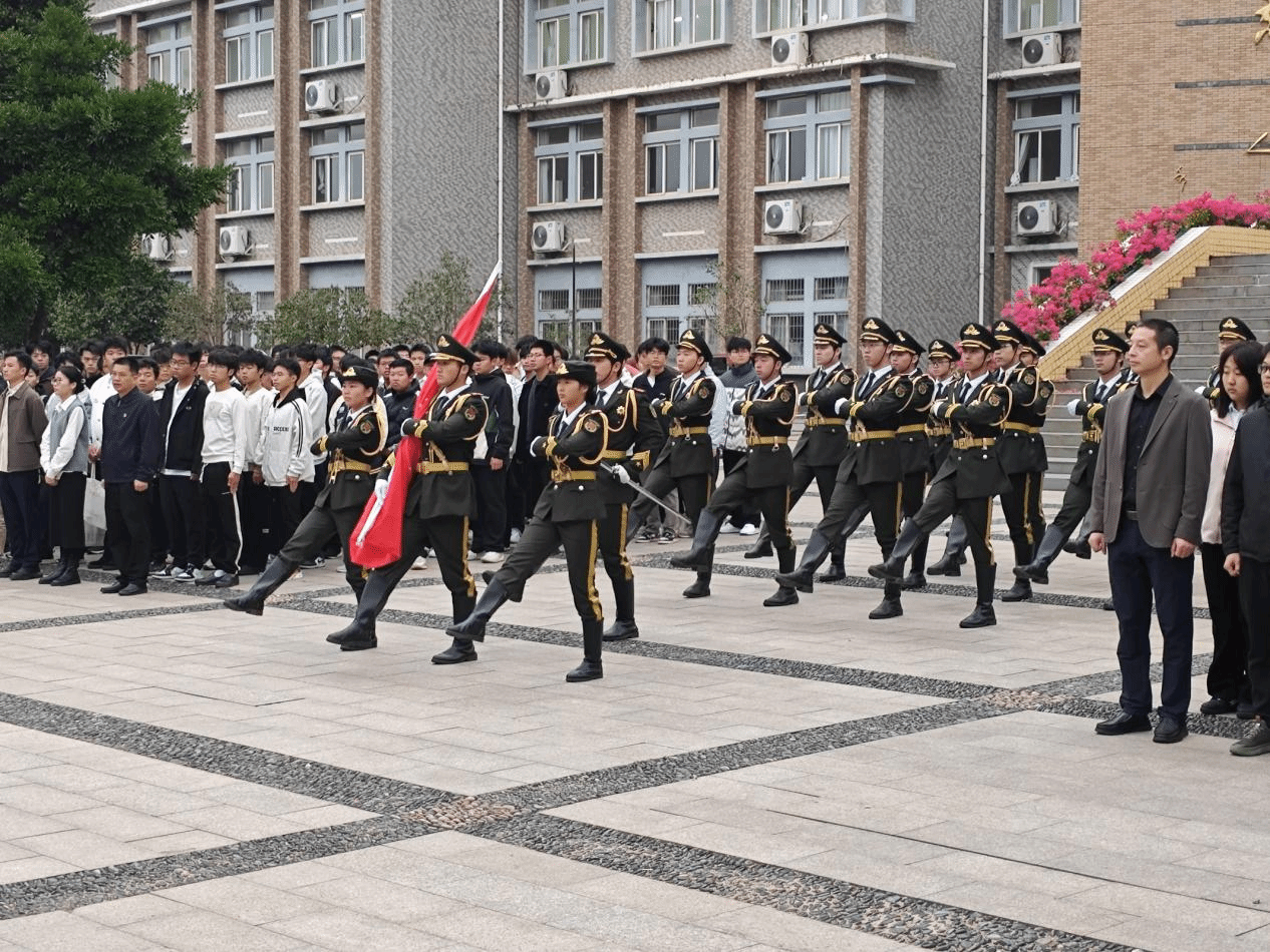 随着初冬的晨曦渐渐照亮天际,广场上汇聚着一张张充满期待与自豪的脸庞。在雄壮激昂的国歌声中,五星红旗迎风招展,缓缓升起,全体师生肃立,行注目礼。