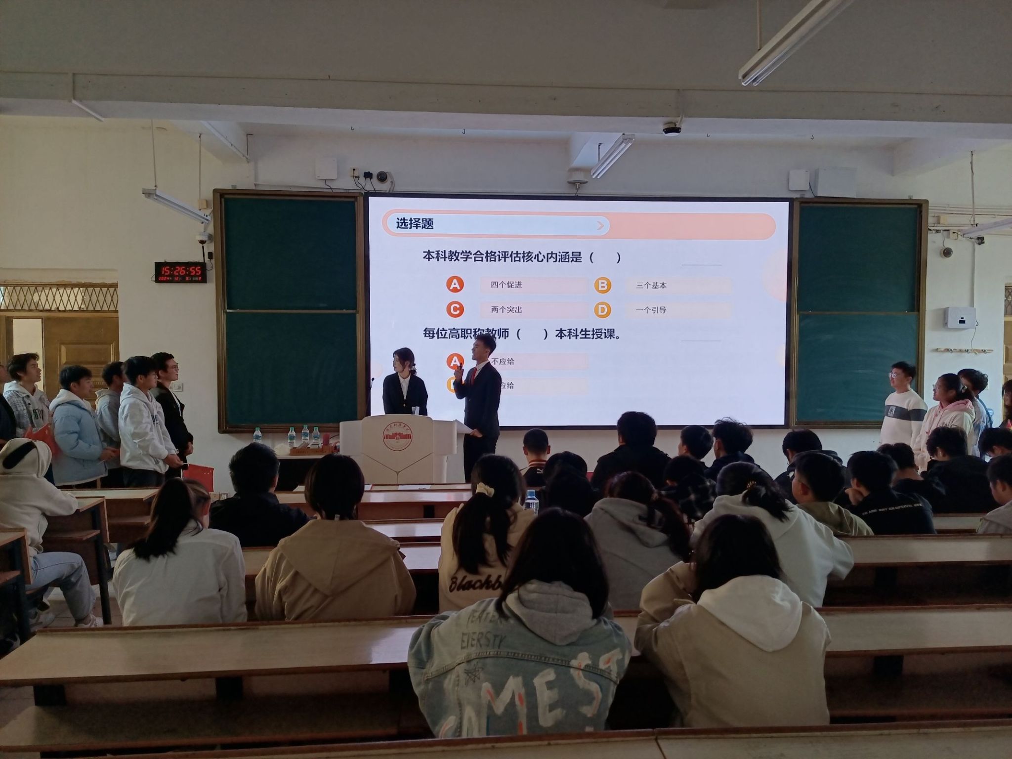 随后,团委负责人卢名亮老师详细介绍了竞赛的规则及流程。本次知识问答竞赛覆盖了学校的教学理念、科研成就、学生管理、校园文化等多个方面,旨在通过趣味横生的问答形式,让师生在轻松愉快的氛围中增进对学院各项工作的了解,同时提升团队协作与知识应用能力。