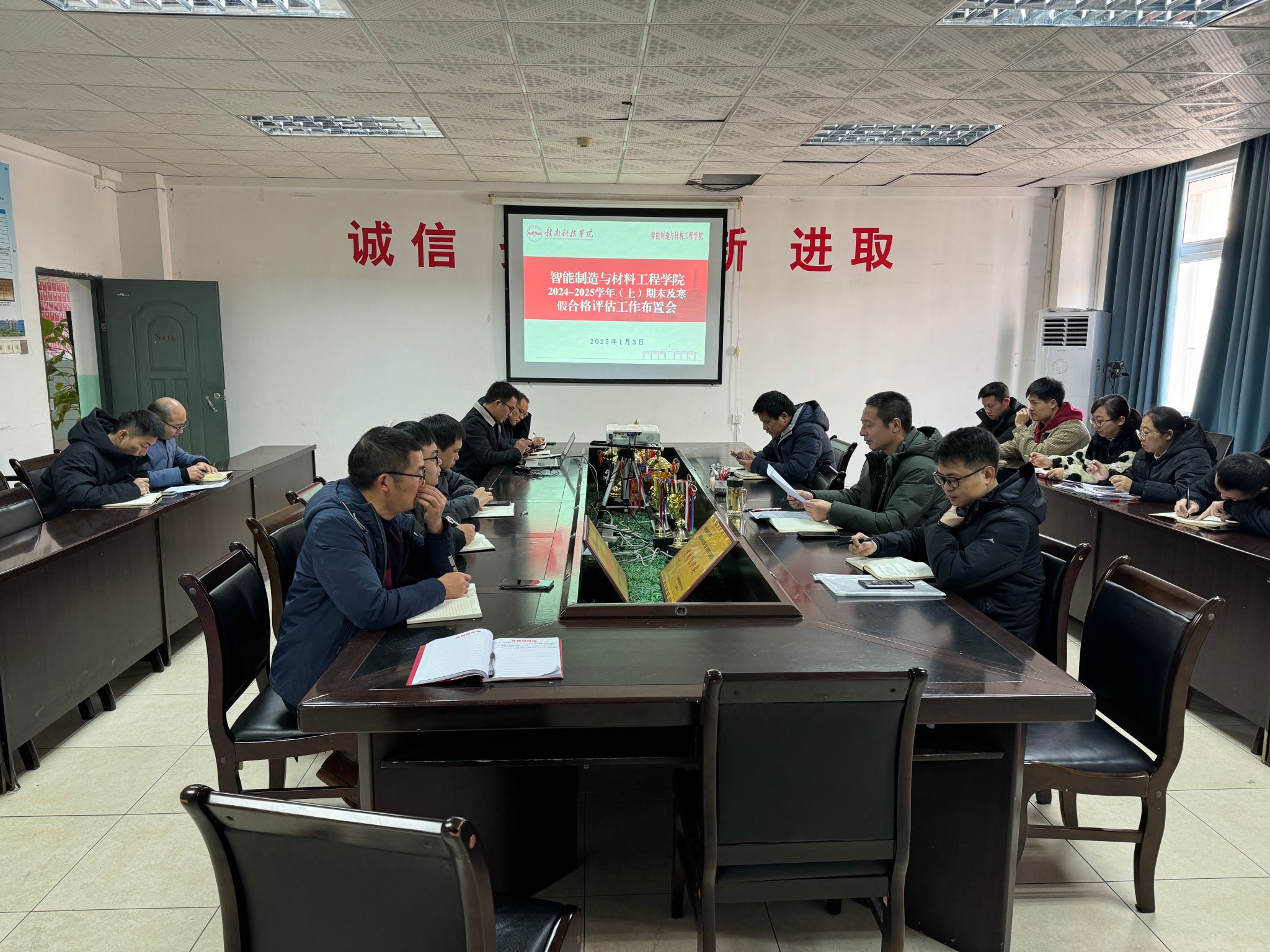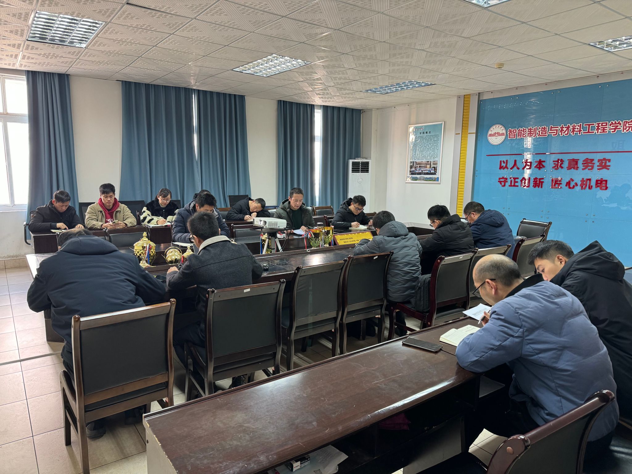 本网讯:1月3日,为切实做好本学期期末及寒假期间的合格评估工作,持续推进“迎评促建”工作入深入实,智能制造与材料工程学院举行2024-2025学年(上)期末及寒假合格评估工作布置会。智能制造与材料工程学院党委委员、副院长刘辉,学院党委委员关开荣、肖志华,各教研室主任及全体辅导员参加会议,会议由刘辉主持。