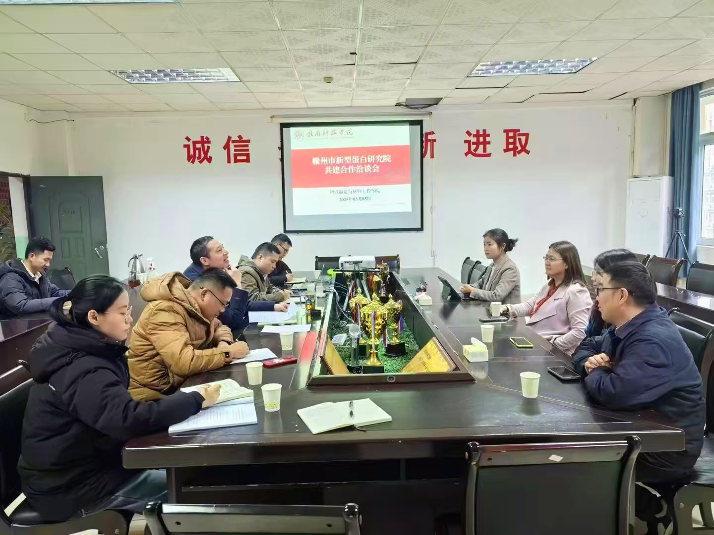 本网迅:3月5日下午,智能制造与材料工程学院与赣州市新型蛋白研究院共建合作洽谈会在工程楼S416会议室举行。赣州市新型蛋白研究院院长张晓琳、院长助理蔡婷、智能制造与材料工程学院党委委员、副院长刘辉及相关教师参加了会议。