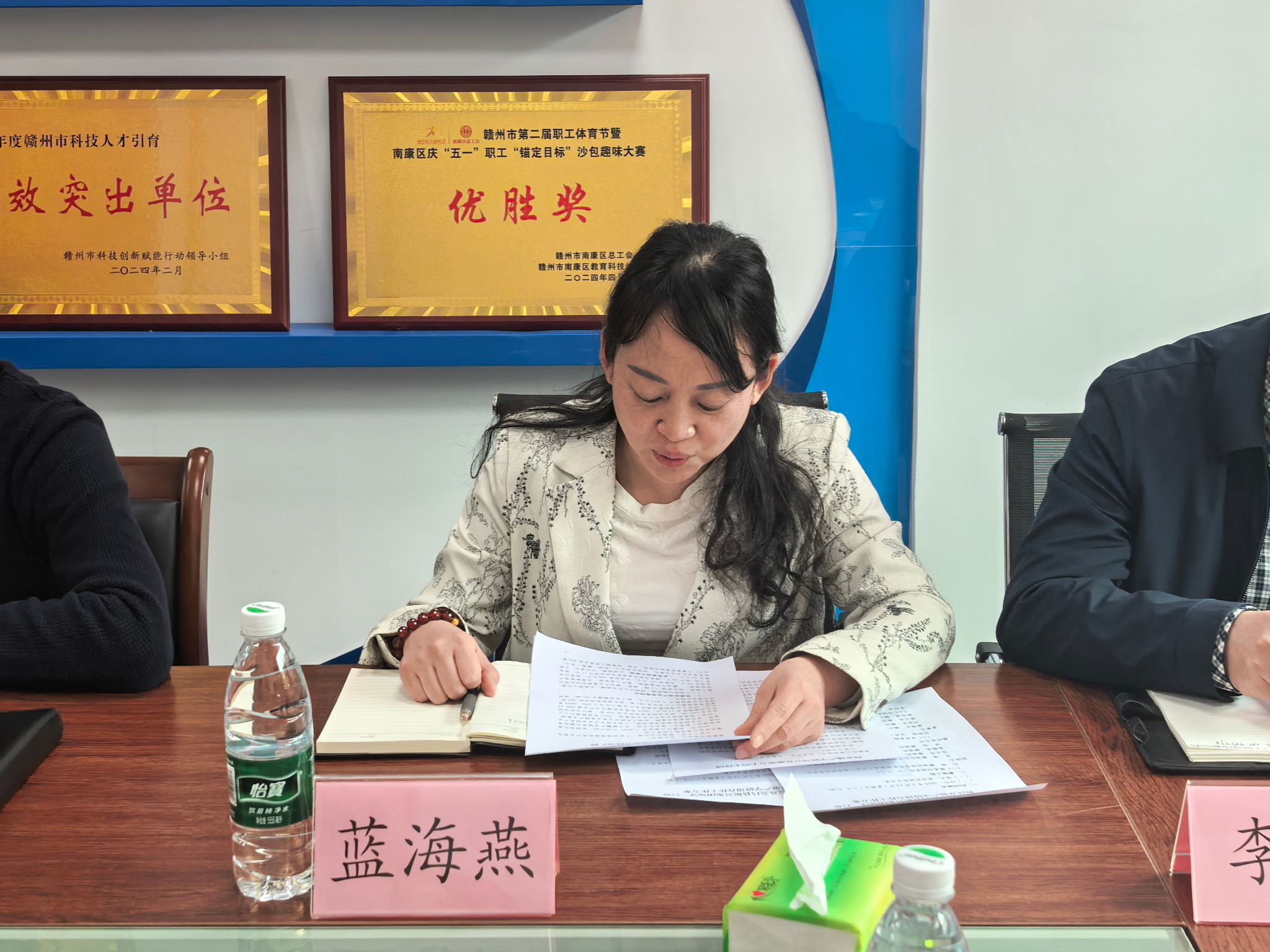 蓝海燕进行总结。她对智能制造与材料工程学院与会昌县振兴集团的交流表示肯定,希望双方深化沟通,探索可行的合作模式。