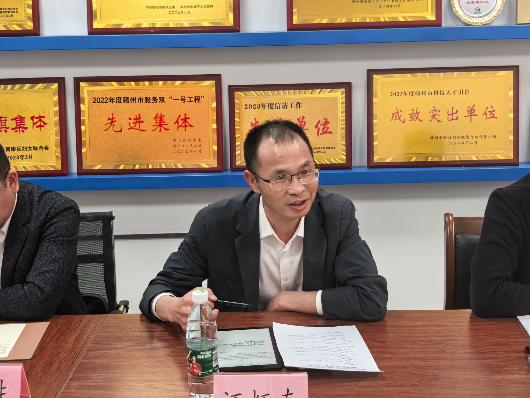本网讯:3月14日下午,智能制造与材料工程学院和南康区科技局、会昌县振兴集团在南康区科技局会议室举行产学研用合作洽谈会。智能制造与材料工程学院党委委员、副院长刘辉率队出席,会昌县振兴农业产业集团党总支书记、董事长汪炳南,南康区科技局党组书记、局长蓝海燕等参加会议。区工信局、区家促局,江西团团圆家具有限公司等企业共同参会。会议由南康区区委常委李粹强主持。