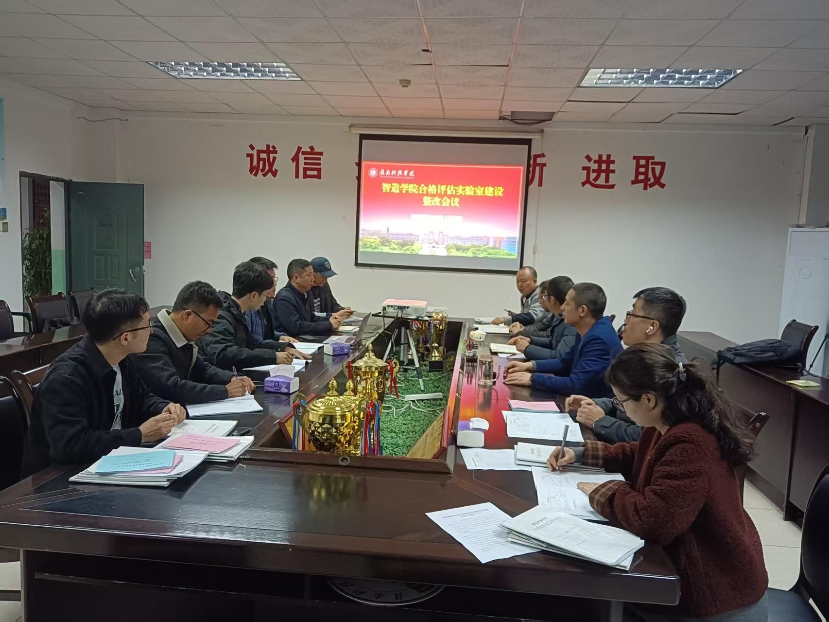 本网讯:为迎接学校本科教学合格评估,进一步完善实验室建设,3月18日晚上,智能制造与材料工程学院在工程楼S416召开合格评估实验室建设整改专题会议。智能制造与材料工程学院党委委员、副院长刘辉,党委委员关开荣、工程实训中心主任钟涛生以及相关实验室负责人参加会议,会议由刘辉主持。