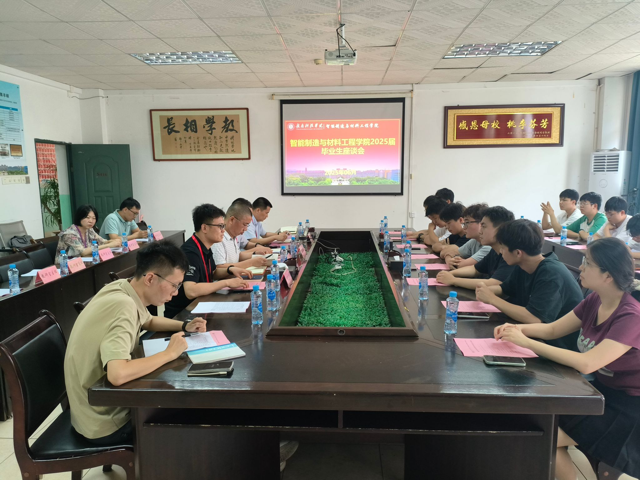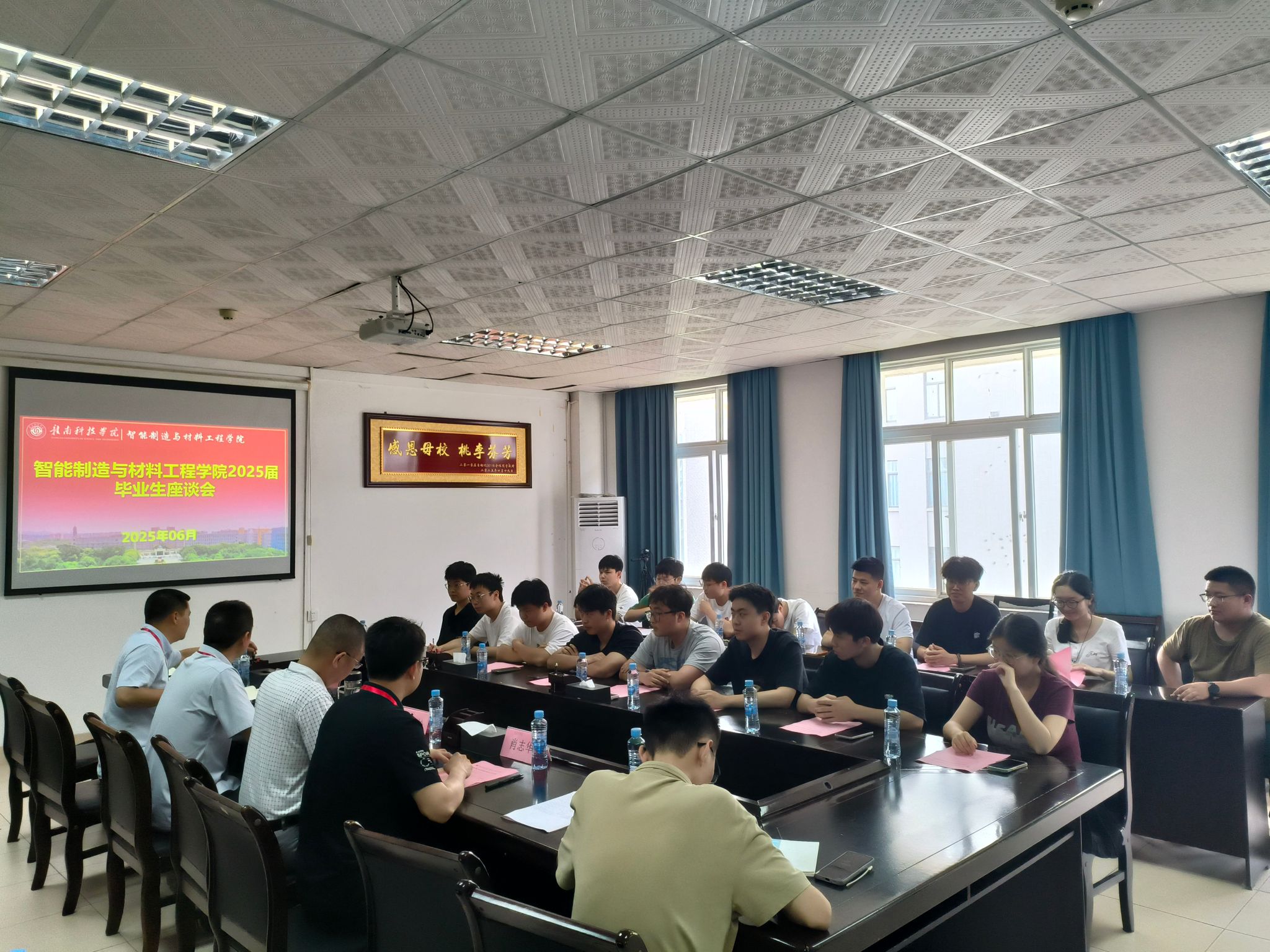 本网讯:6月12日上午,智能制造与材料工程学院2025届毕业生座谈会在工程研究院S416会议室召开。智能制造与材料工程学院党委副书记朱根松、副院长刘辉及学院领导班子成员、教研室主任、毕业班辅导员和毕业生代表40余人共聚一堂,共叙师生情谊,共谋发展建议。