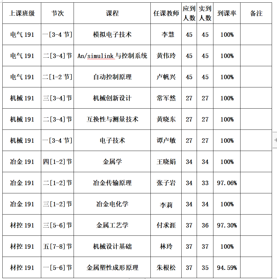 2、19级各班到课率情况通报