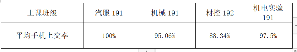 从数据来看,汽服191班同学手机上交率较高,表现良好,希望能够