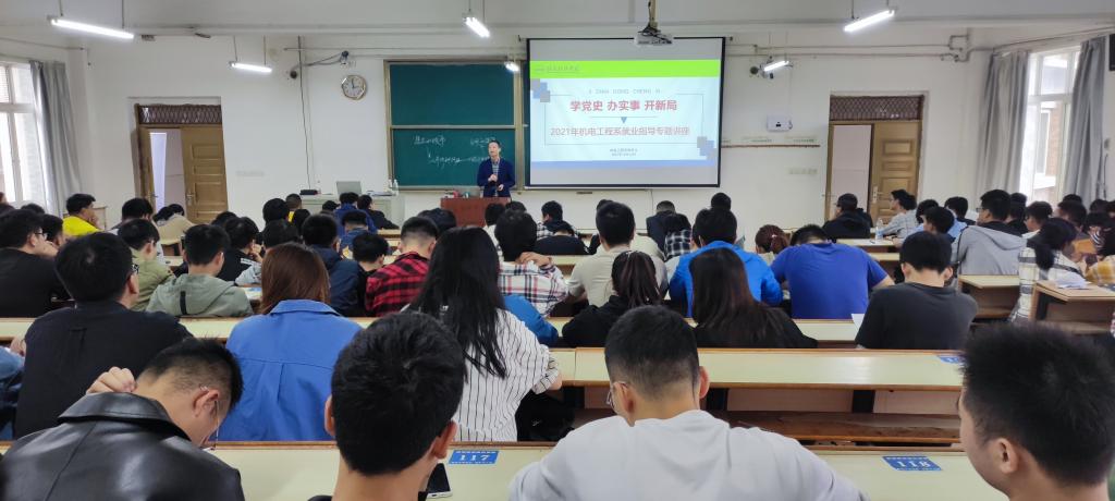 本网讯:10月12日下午,机电工程系在主教Z1D2、Z1D3举办2021年就业指导专题讲座,系主任刘辉、副主任肖志华出席会议,全体2018级学生参加动员会。