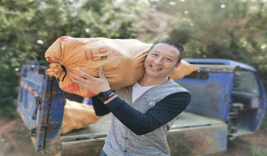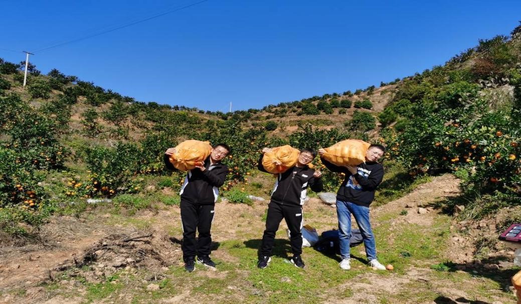 学弟、学妹们为备考学子填充脐橙礼盒