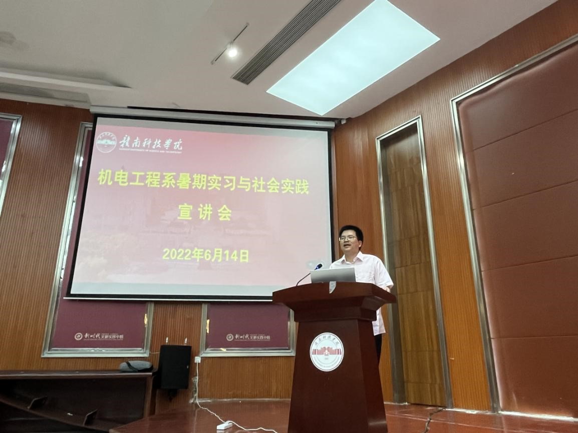 本网讯:6月14日,机电工程系在逸豪学术报告厅举办暑期实习与社会实践宣讲会,本次宣讲会共吸引格力电器(赣州)有限公司、孚能科技股份有限公司、晨光稀土新材料有限公司等12家优质企业参加,系主任刘辉、副主任关开荣、教师代表以及机电工程系19级300余名学生参加了宣讲会,此次宣讲会由关开荣主持。