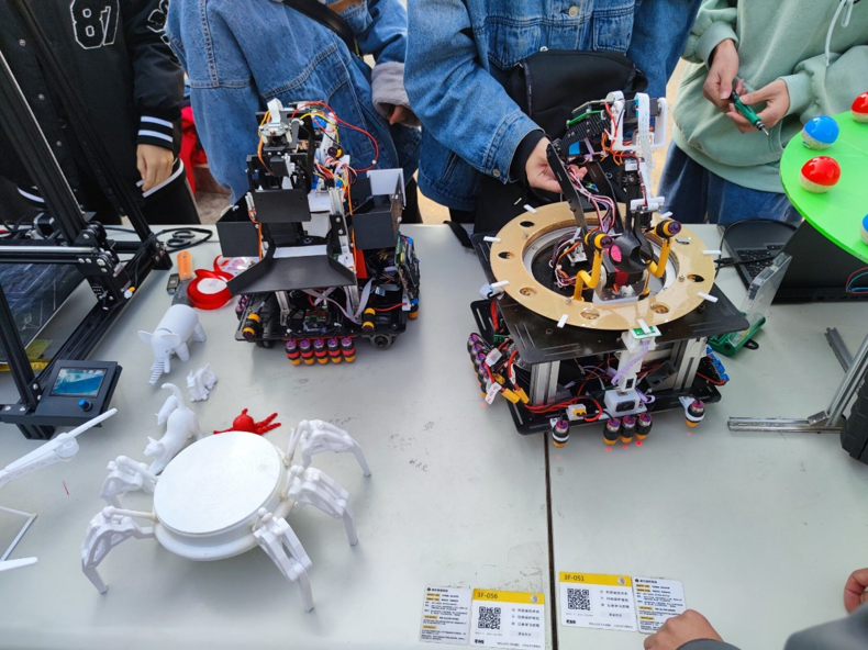 在众多的科技产品中,有3D动力协会用3D打印机做出的防疫天使模型、智能消防无人机、六足机器人、动漫手办等小型桌面摆件,有学生自主制作的智能车,电子创新协会自制的分拣机器人,还有学生自主研发的自动感应窗户(可根据天气情况做出反应,实现自动开关窗)。