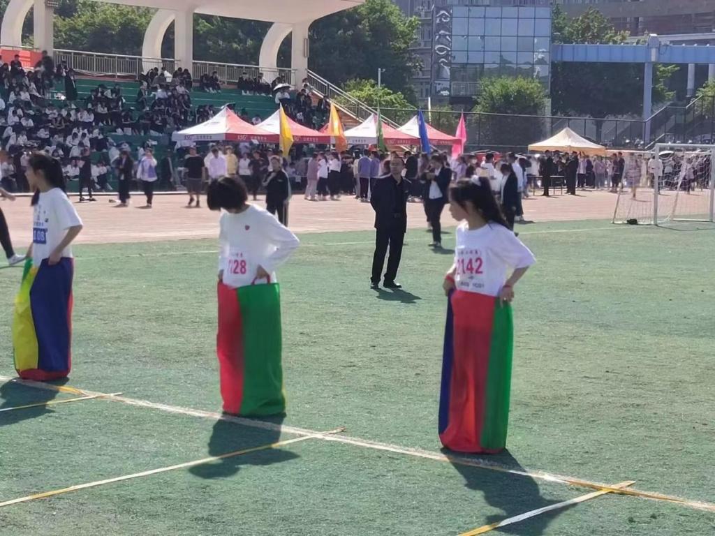 在一系列田赛与径赛中,运动健儿们奋力拼搏,坚持不懈,在运动场上留下了他们拼搏的汗水;观众们也丝毫不吝啬他们的赞美与掌声,充满热情地为运动员们欢呼、挥旗,赛场上的身影和场外的欢呼声共同构绘了一幅生机盎然的美丽画卷。
