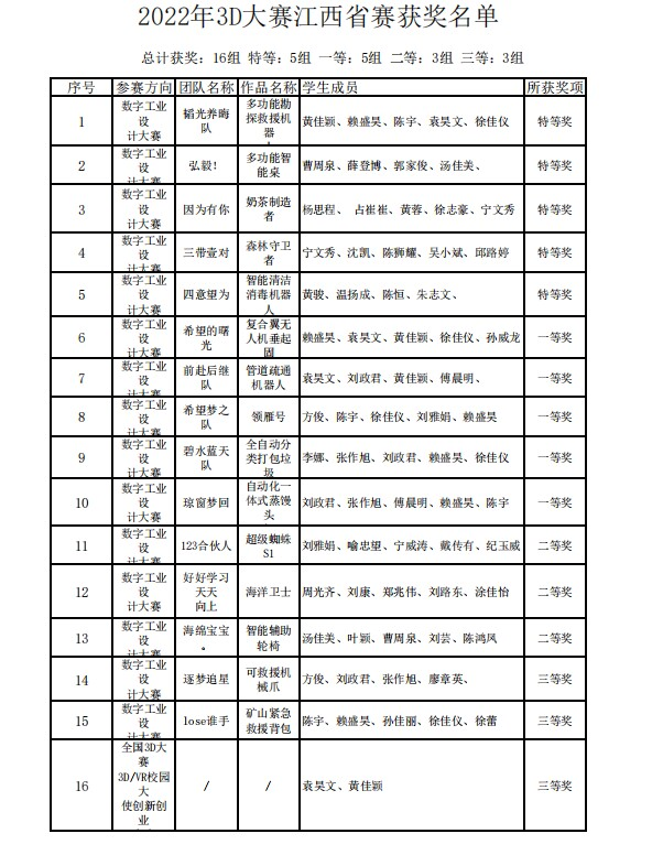 本网讯:2022年11月4日,第十五届全国3D大赛年度竞赛省赛作品评审工作圆满结束,我校在前期通过全国3D大赛初赛共选拔出了18支队伍进入省赛参赛,共计有16支队伍获得省奖,其中荣获特等奖5项、一等奖5项、二等奖3项、三等奖3项,我校在该项赛事又取得了突破性的成绩。