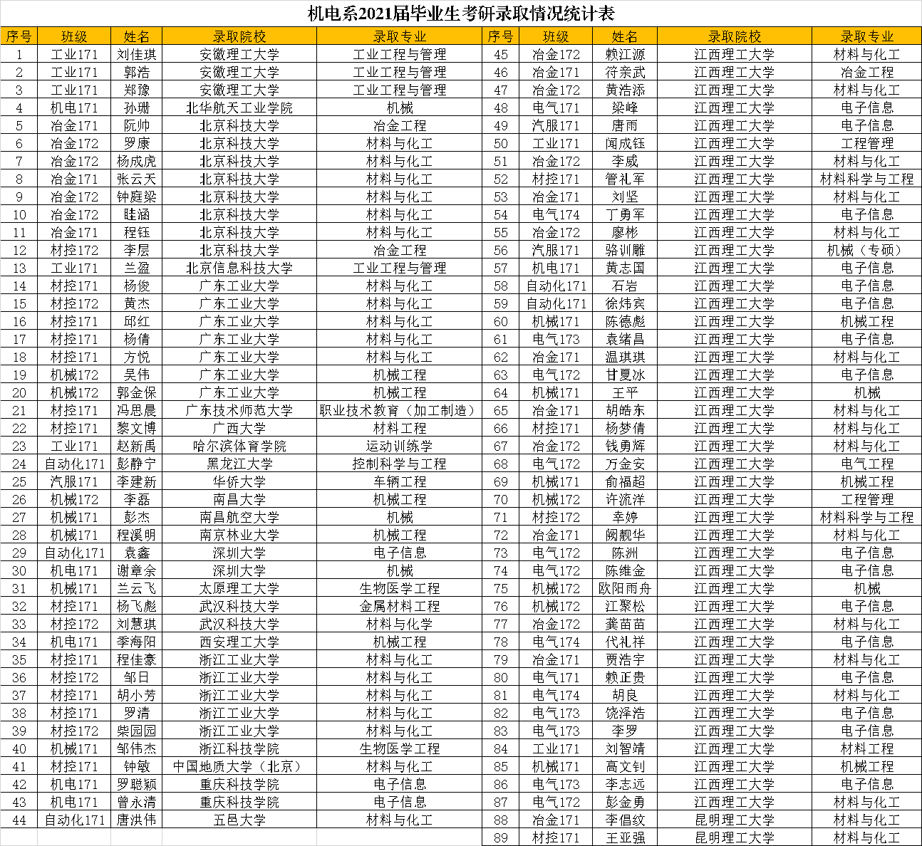 近日,研究生入学考试复试录取工作已结束,机电工程系考研录取捷报频传。2021届毕业生考研录取率达18.2%,居学院首位。