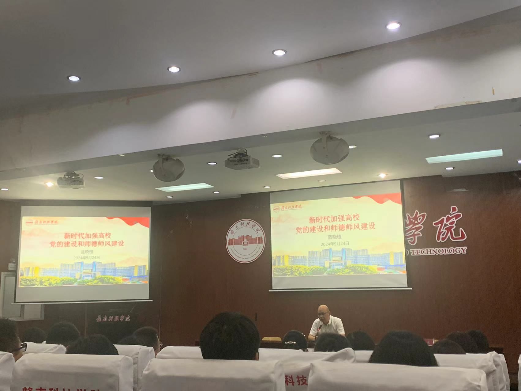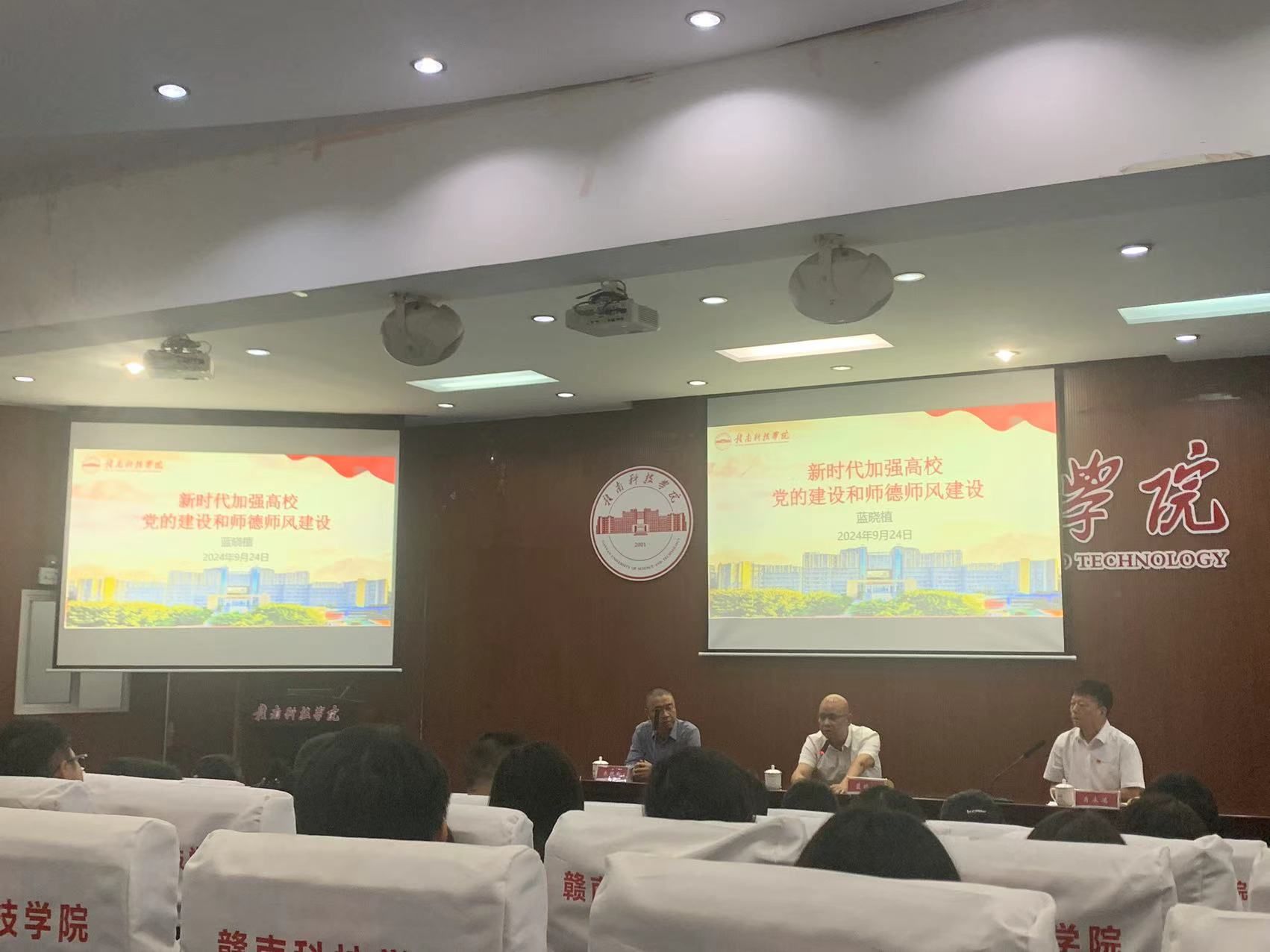 本网讯:为深入学习贯彻党的二十大和二十届二中、三中全会精神和习近平总书记考察江西重要讲话精神,学习领会《中共中央国务院关于弘扬教育家精神加强新时代高素质专业化教师队伍建设的意见》,全面贯彻党的教育方针,紧抓立德树人根本,着力提升教师思想政治教育素质及职业道德水平。9月24日下午,校党委委员、组织人事部部长蓝晓植在MBA学术报告厅为智能制造与材料工程学院教师作“新时代加强高校党的建设和师德师风建设”专题讲座。