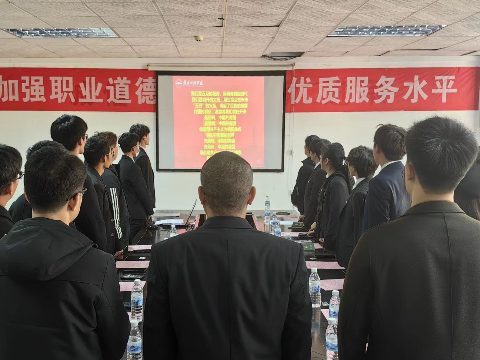入团仪式开始,全体人员起立奏唱中华人民共和国国歌,随后由卢名亮宣布2023年新团员名单,老团员为新团员颁发团员证、佩戴团徽。