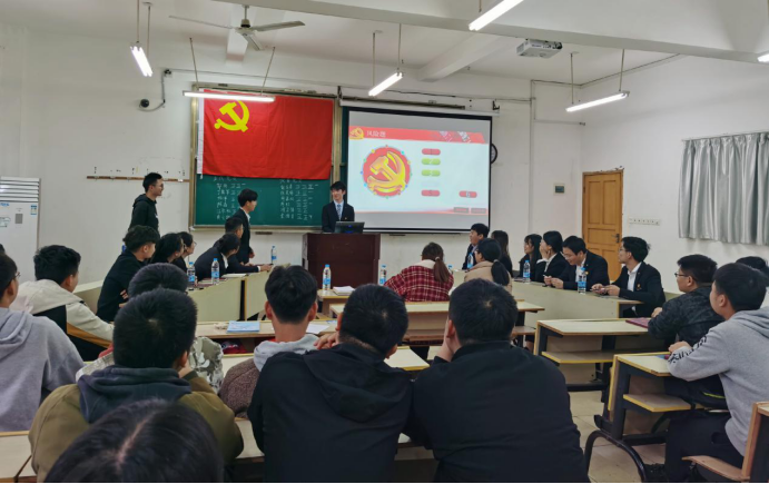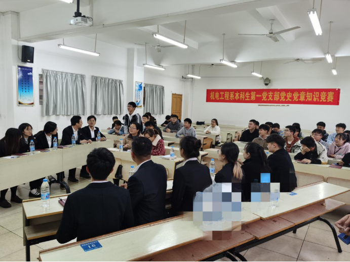 (本网讯:李梓康)3月23日下午,为迎接中国共产党成立100周年,创新党支部党日活动形式,机电工程系本科生第一党支部在主教学楼Z113开展了以“学习党史党章”为主题的知识竞赛。机电工程系副主任、本科生第一党支部书记肖志华、支部宣传委员张新予、系党总支组织委员杨瑞以及党支部全体党员参加了此次活动。
