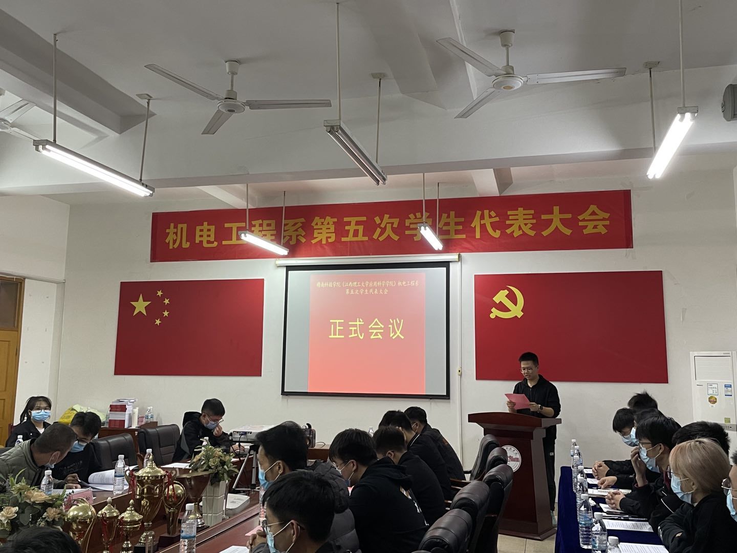 短暂的休会过后,正式会议召开。首先开始第一项议程,听取和审议《机电工程系第四届学生委员会工作报告》总结2020-2021学年系学生会工作所取得的成绩和经验,总结不足之处。同时明确学生会的工作目标,对今后的工作进行了展望规划第二项议程选举赣南科技学院(江西理工大学应用科学学院)机电工程系第五次学生代表大会常任代表第三项议程选举参加学校第四次学生代表大会代表第四项议程讨论通过《机电工程系学生会章程