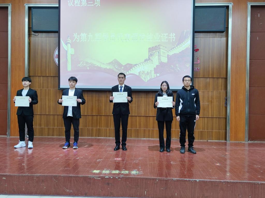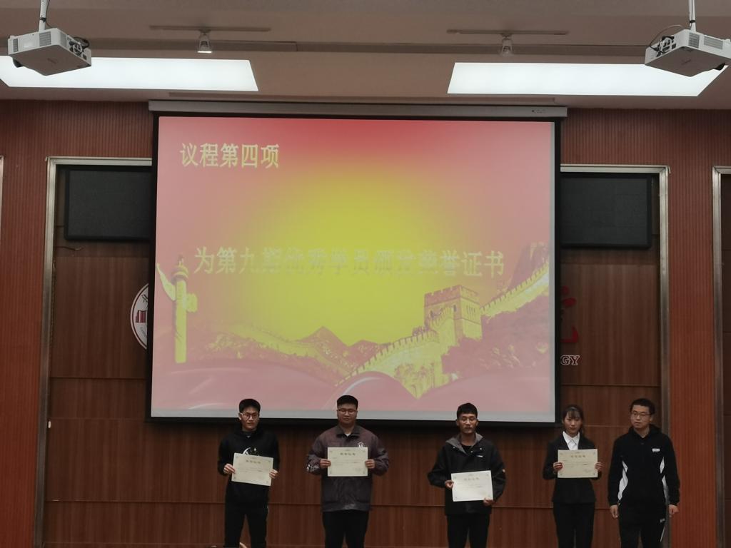 大会议程第四项:机电工程系团总支负责人张敏老师为第期优秀学员颁发荣誉证书