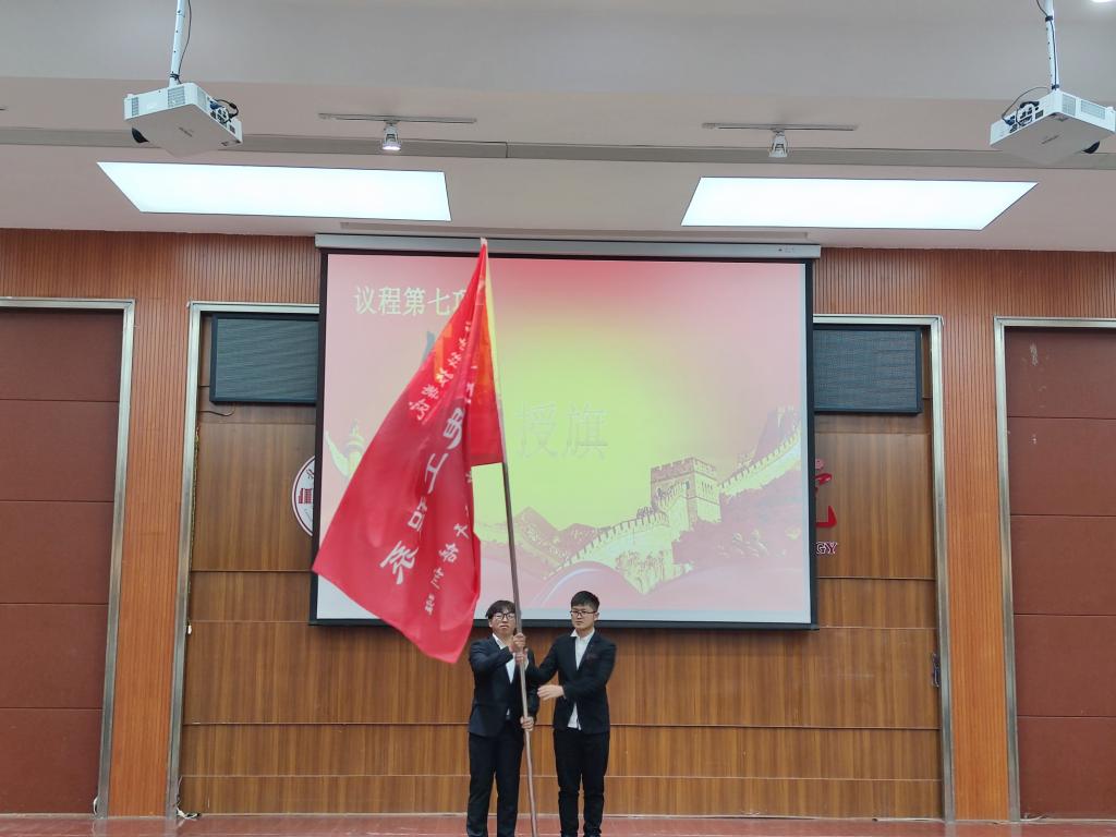 大会议程第项:期青马班班助代表舒毅同学带领全体新学员宣誓、老学员重温誓词。