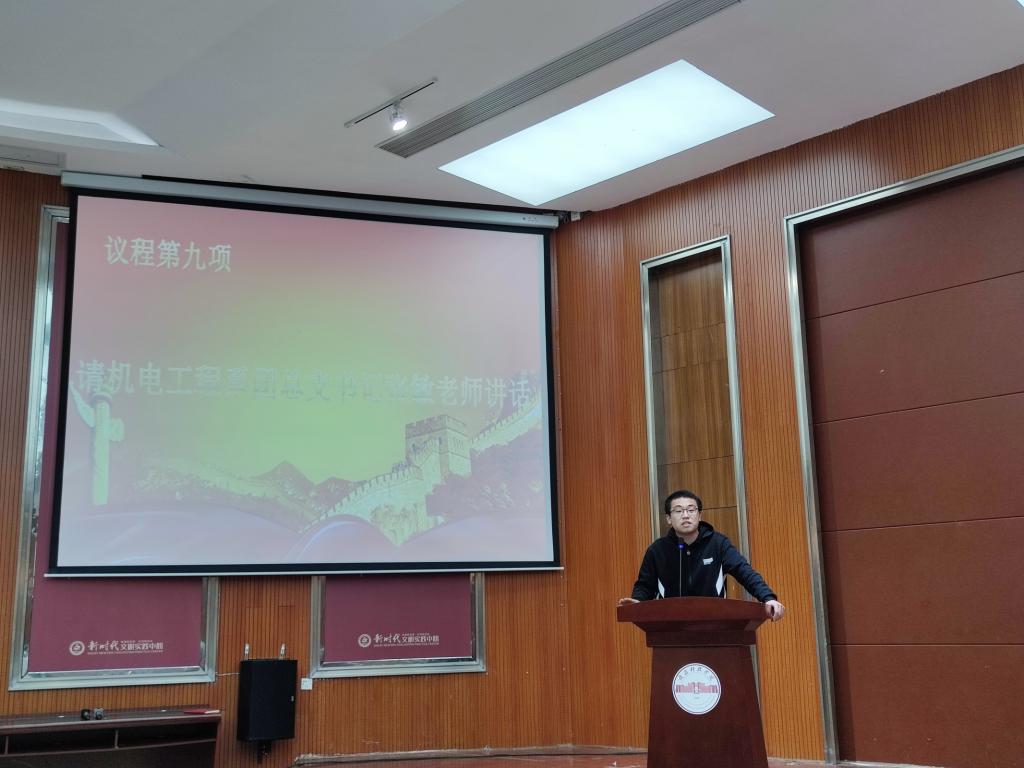 大会议程第九项:机电工程系团总支书记张敏老师为青马班学员做重要讲话,讲述了青马班是一个展示我们能力的平台,也是我们锻炼自己的机会,同时表示希望学员能够“两条腿走路”,在繁忙的社会实践工作中也能兼顾到学习,不要落下自己学业上的成绩。紧接着讲述了在社会实践工作中可以学习到很多社会经验,张敏老师的讲话使同学们受益匪浅。