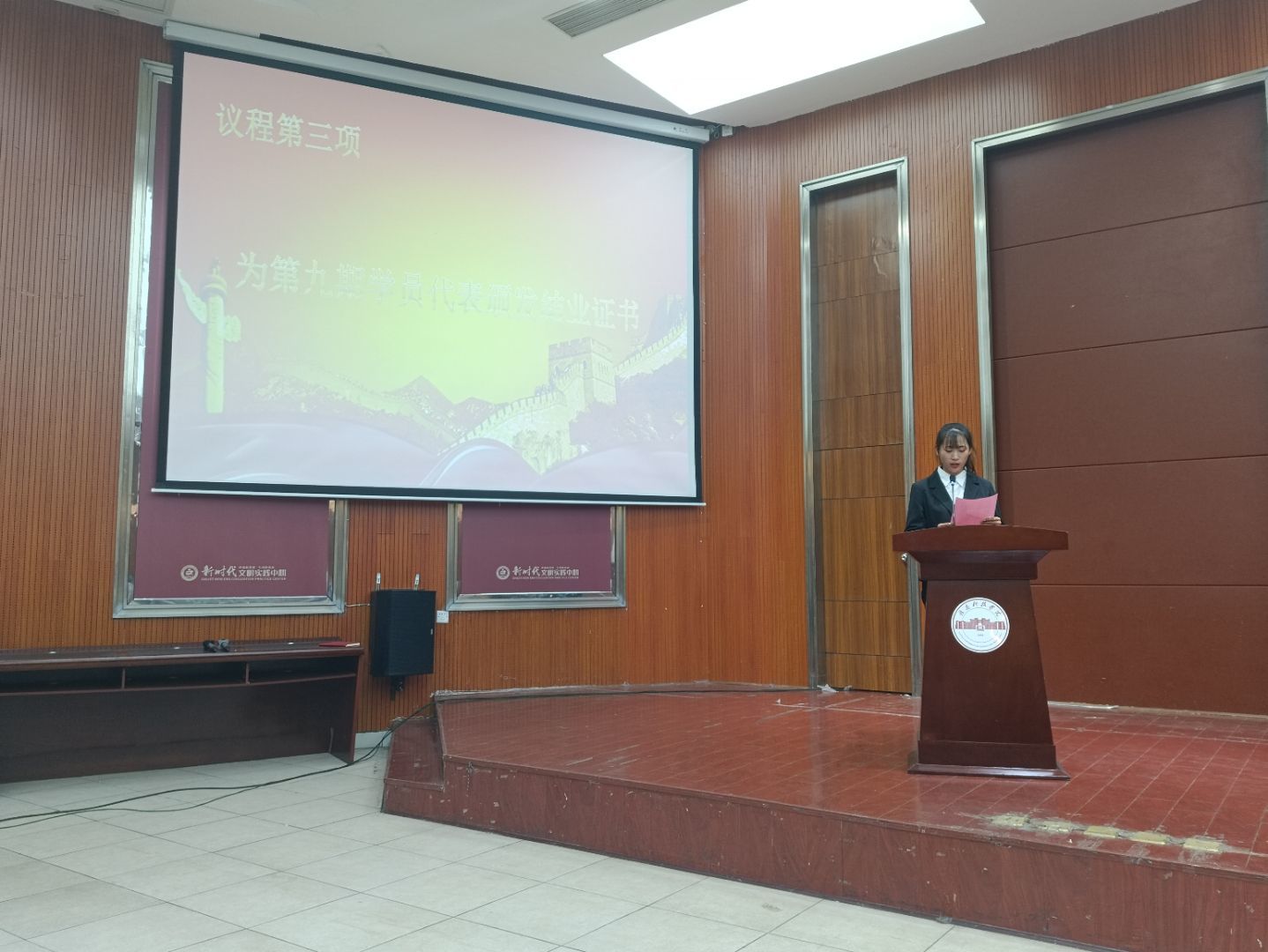 大会议程第三项:期青马班班主任张敏老师为第期学员代表颁发结业证书