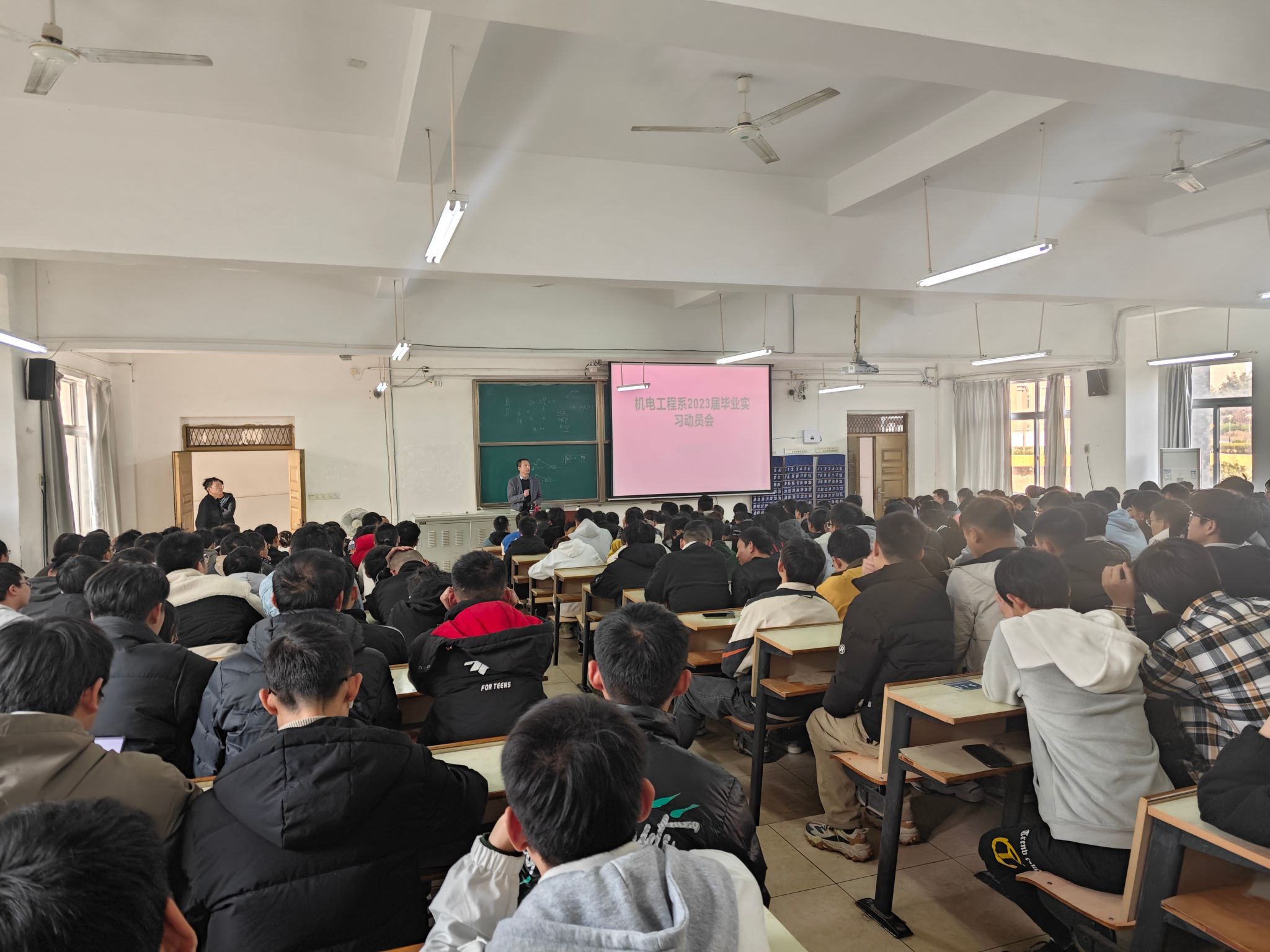 本网讯:2月27日下午,机电工程系在教学主楼Z1D3教室召开了2019级学生毕业实习动员大会。系主任刘辉、副主任关开荣、实习带队教师及参与实习的学生等参加大会,会议由关开荣主持。