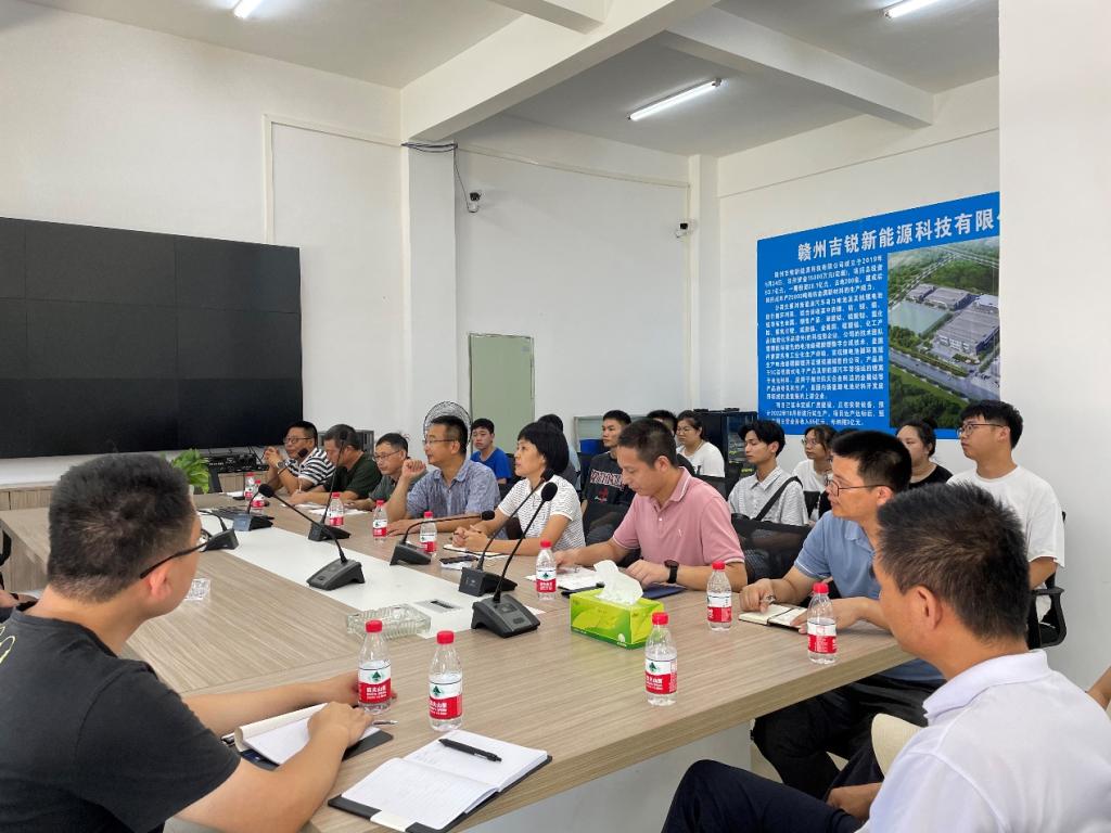 7月11日,为进一步加强校企合作及促进学生就业,我校机电工程系师生赴赣州吉锐新能源科技有限公司(以下简称“吉锐新能源”)开展长学时实习实践活动。机电工程系主任刘辉、副主任关开荣、金属材料教研室主任张聚国,吉锐新能源副总经理廖志刚、办公室主任叶敏、生产部部长刘章伟、质检部部长李能华、工程部部长陈克勤,以及机电工程系姚姝莉、肖礼成、胡昊明等专任老师和参加长学时实习的25名学生参加欢迎会。
