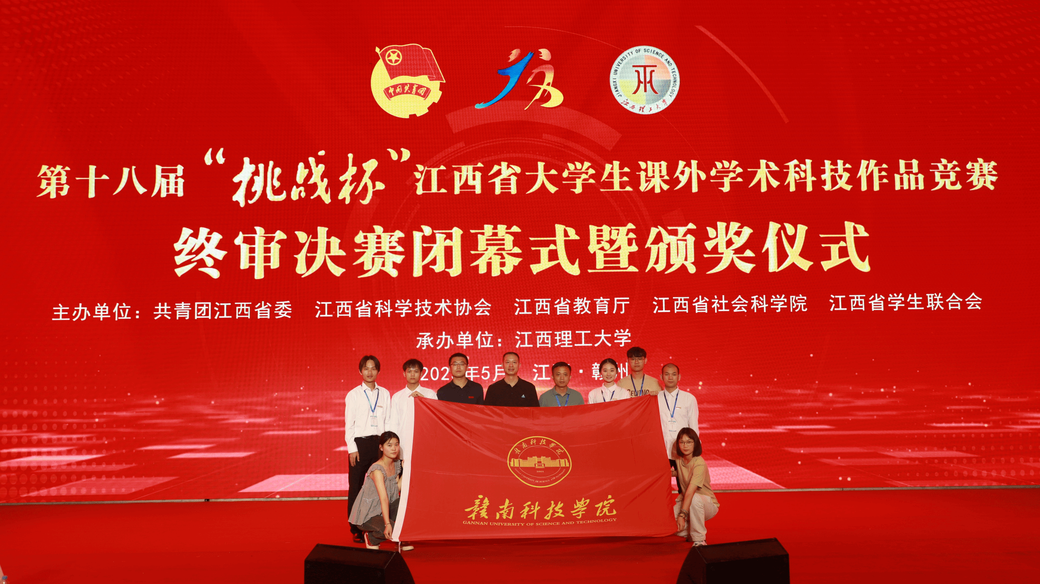 本网讯:第十八届“挑战杯”江西省大学生课外学术科技作品竞赛终审决赛于5月27-28日江西理工大学举行,我校共有5个项目团队参加省赛,其中1个项目入围本次终审决赛,经激烈角逐,我校在本届挑战杯竞赛中,获二等奖1项,三等奖4项获奖等级、获奖数量再创我校历史新高