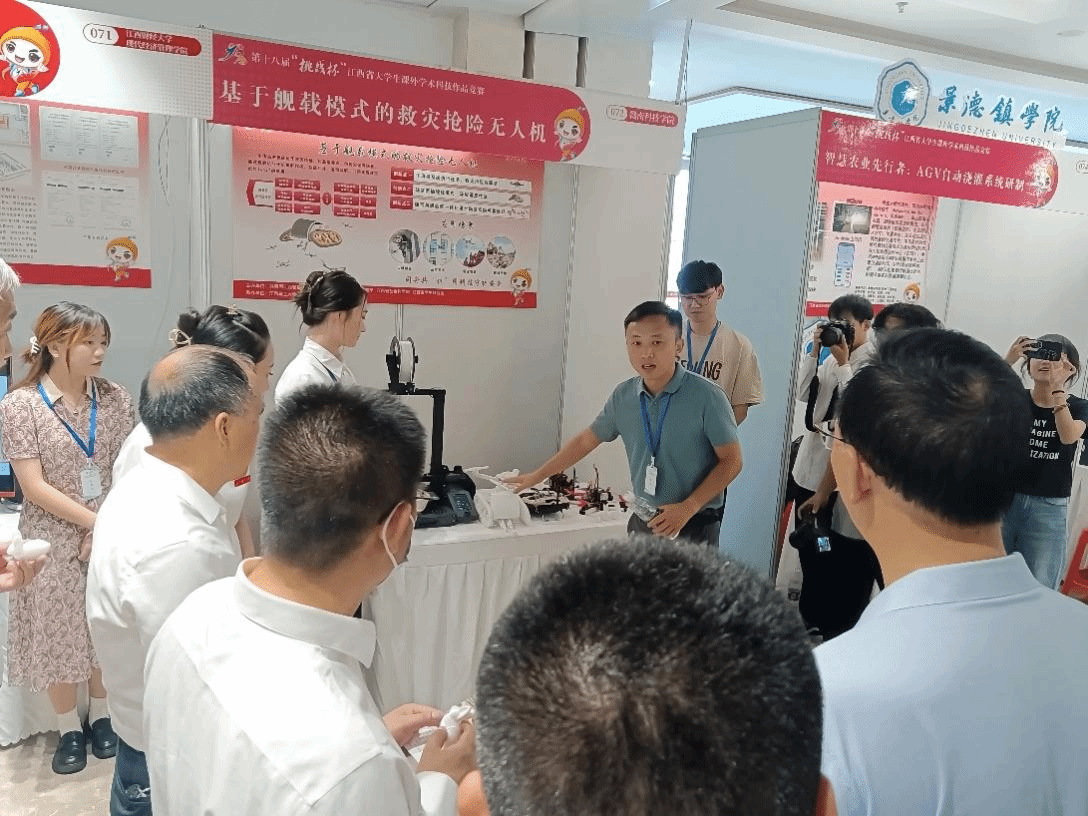 针对本次赛事,学校领导高度重视,校长李国金亲临现场为我院校参赛选手鼓劲加油,勉励同学们认真备赛创造佳绩。同时,共青团江西省委书记邱凌同志及各位专家莅临我校作品《同舟共“机”——基于舰载模式的救灾抢险无人机》展台指导,并听取团委李敏书记及学生项目负责人的作品汇报。