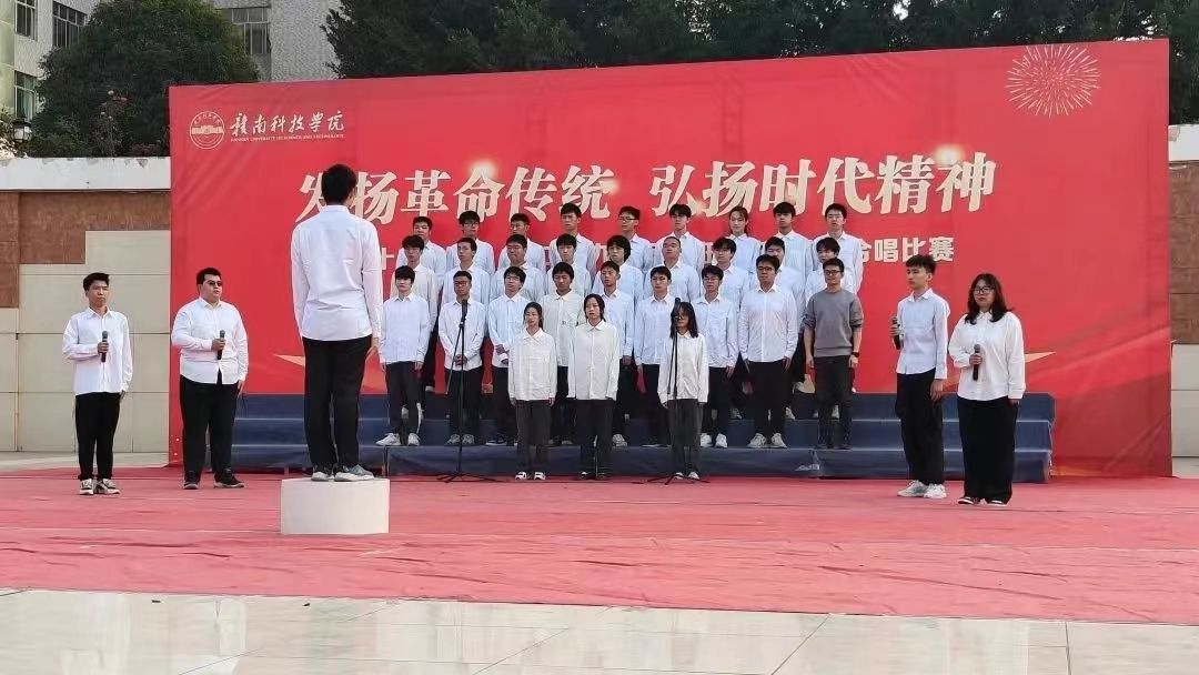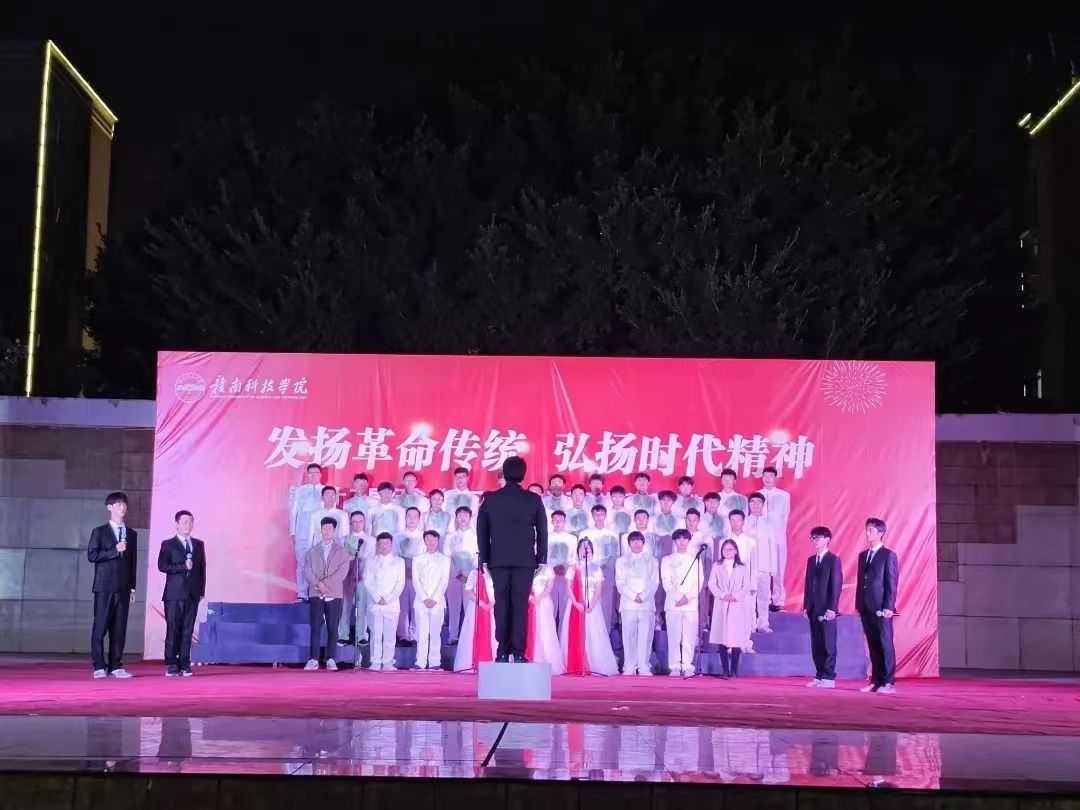 本网讯:为纪念“一二·九”学生爱国运动88周年,培养我校青年大学生“爱党、爱国、爱校”的情怀。11月25日,机电工程系在冶金广场举办了“一二·九”革命歌曲大合唱比赛。比赛由学院思政部陈雨瑶老师、信息工程系辛伟老师、机电工程系杨瑞老师担任评委,机电工程系全体师生共同参与并观看了本次比赛。