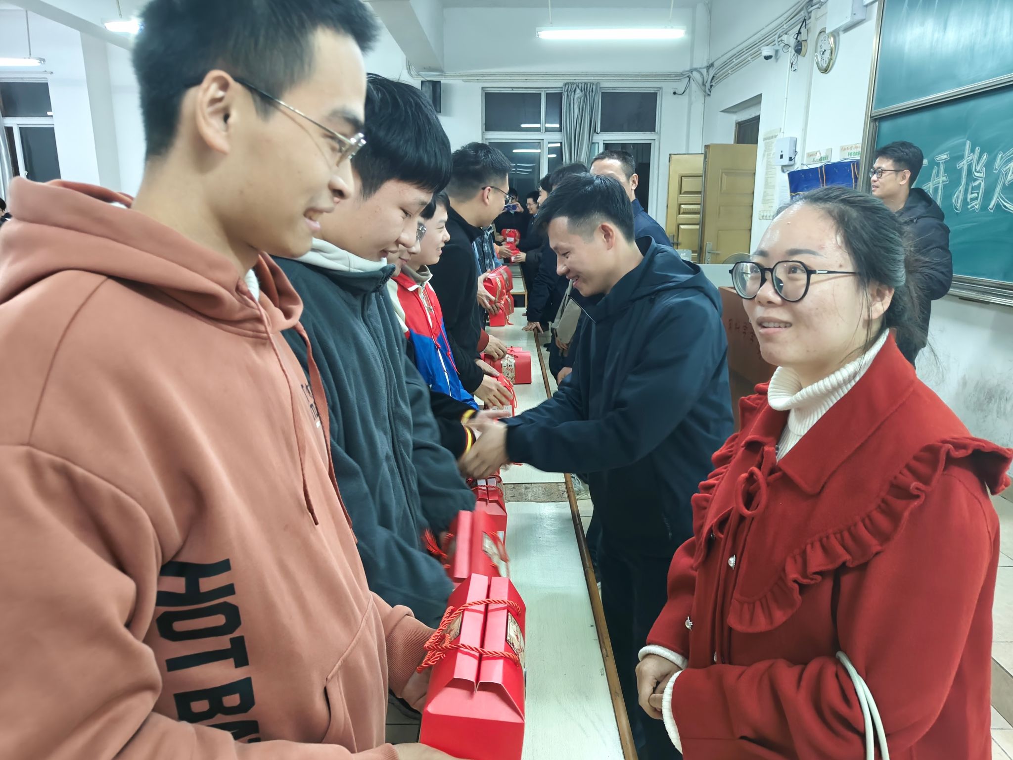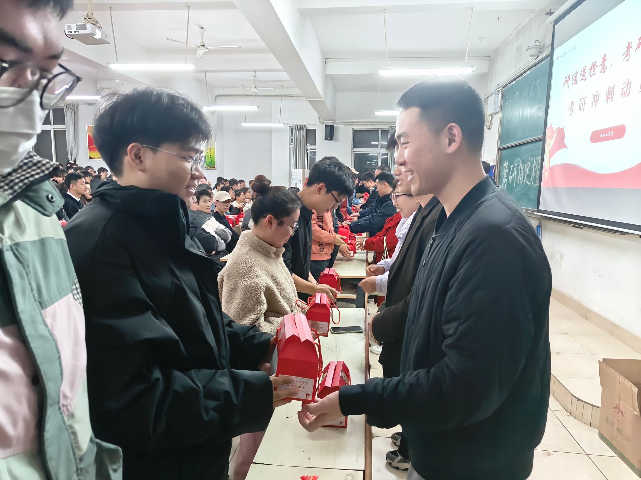 随后,机电工程系所有老师给考研同学们送来祝福,为每位考研学生赠送脐橙小礼盒,寓意“研”途送橙意,考研指定“橙”。