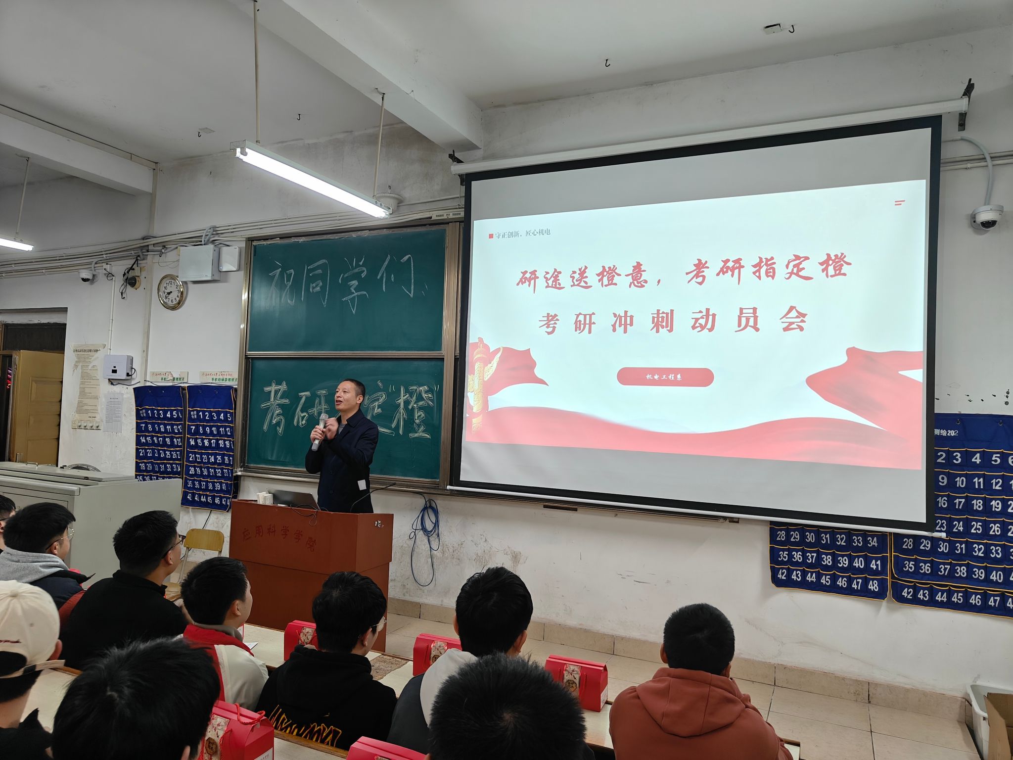 本网讯:2023年全国硕士研究生统一考试即将开始,为帮助备考学子们树立信心,化压力为动力,以最饱满的精神状态应对研究生考试,在考研途中激流勇进,赣南科技学院机电工程系于12月12日20:30在主教Z1D4召开“研途送橙意,考研指定橙”考研冲刺动员大会。机电工程系主任刘辉、副主任肖志华和关开荣、全体辅导员以及2024届全体考研学生参加本次会议,此次会议由肖志华主持。