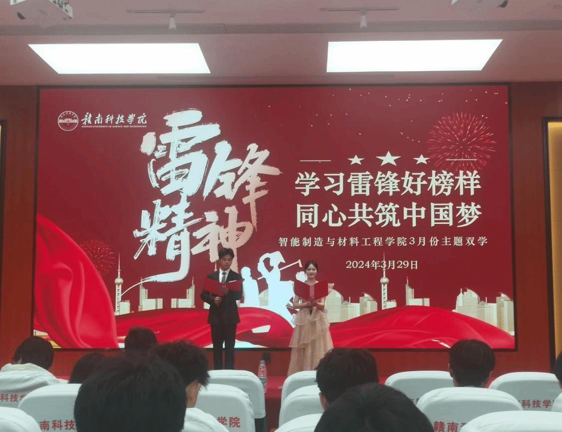本网讯:3月29日晚,为深入贯彻雷锋精神,加强我校师生学习雷锋精神的意识与行动,智能制造与材料工程学院团总支、学生会于逸豪学术报告厅举办了“弘扬雷锋精神,做新时代青年”主题双学活动。