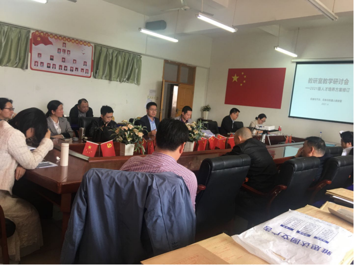 (本网讯:梁田、关开荣)为进一步做好机电工程系本科专业人才培养方案修订工作,创新人才培养模式,优化人才培养体系,提高人才培养质量,4月13日下午,我系组织全体教师开展2021版人才培养方案修订研讨会。此次研讨会按学科分机械、材料冶金、电气自动化三个专业群分组举行。学院副院长付玉华、系主任刘辉、系党总支书记朱根松、副主任关开荣和肖志华分别参加各组研讨会,三个小组分别由常军然、张聚国、李明辉三位教研室主任主持。