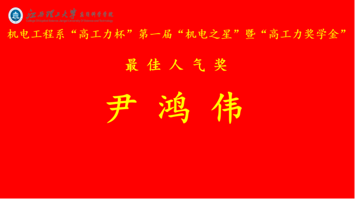 机电工程系第一届“机电之星”最佳人气奖获得者:尹鸿伟