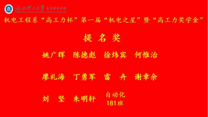 机电工程系第一届“机电之星”提名奖获得者: