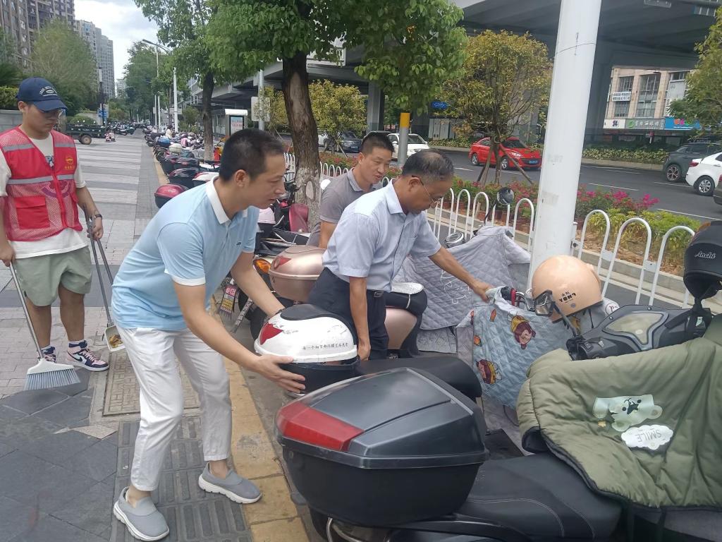 李国金实地查看了挂点路段环境卫生情况,对发现的非机动车乱停放等问题进行了劝导和整顿,对有色垃圾、烟头杂草进行了清理,与志愿者们亲切交谈,送上降温防暑饮品,嘱咐志愿服务人员要注重防暑降温,确保身心健康,相关责任部门要做好后勤服务保障工作。