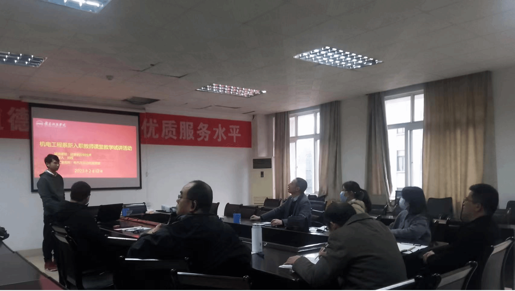电气与自动化教研室的郭权和胡昊明两位新老师分别就本学期新授课程进行了试讲。试讲结束后,各位老师就试讲过程中的板书与PPT的结合、与学生的互动、知识的拓展等方面提出了建议和意见。提醒新教师应注意的内容衔接、案例的引入、授课内容的重点和难点的强调等。