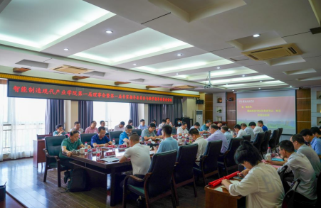 本网讯:为深化高素质、应用型、复合型、创新型人才培养引领,加快学校智能制造现代产业学院的建设,5月30日上午,赣南科技学院召开智能制造现代产业学院第一届理事会暨第一届专家指导委员会与教学指导委员会会议。智能制造现代产业学院第一届专家指导委员会主任李立德,学校党委副书记、校长李国金,党委委员、副校长左群,学校过渡期管理委员会常务副主任何锦龙、委员付玉华,智能制造现代产业学院第一届理事会到会成员、专家指导委员会到会成员、教学指导委员会到会成员及教师代表参加会议。会议由何锦龙主持。