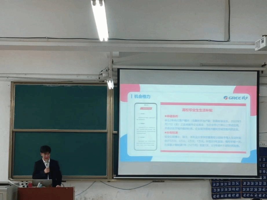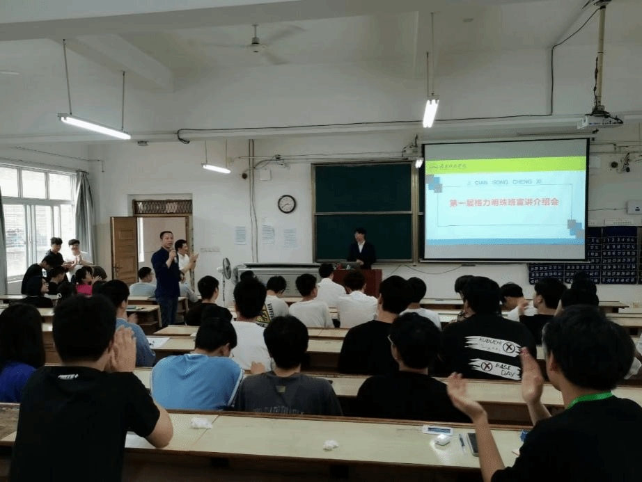 本网讯:为深化产教融合,探索现代产业学院建设途径,提升应用型人才培养质量,进一步拓展毕业生的就业渠道,搭建起产教融合基地平台,格力电器(赣州)有限公司(以下简称“格力电器”)与我校机电工程系共建“赣州格力明珠班”。5月5日,在教学主楼Z1D3举行赣州格力明珠班宣讲介绍会,格力电器总经办洪志勇、招聘经理尹会鸿、机电工程系主任刘辉、各教研室负责人、20级班主任辅导员以及200余名学生参加了此次宣讲介绍会,介绍会由机电工程系副主任关开荣主持。