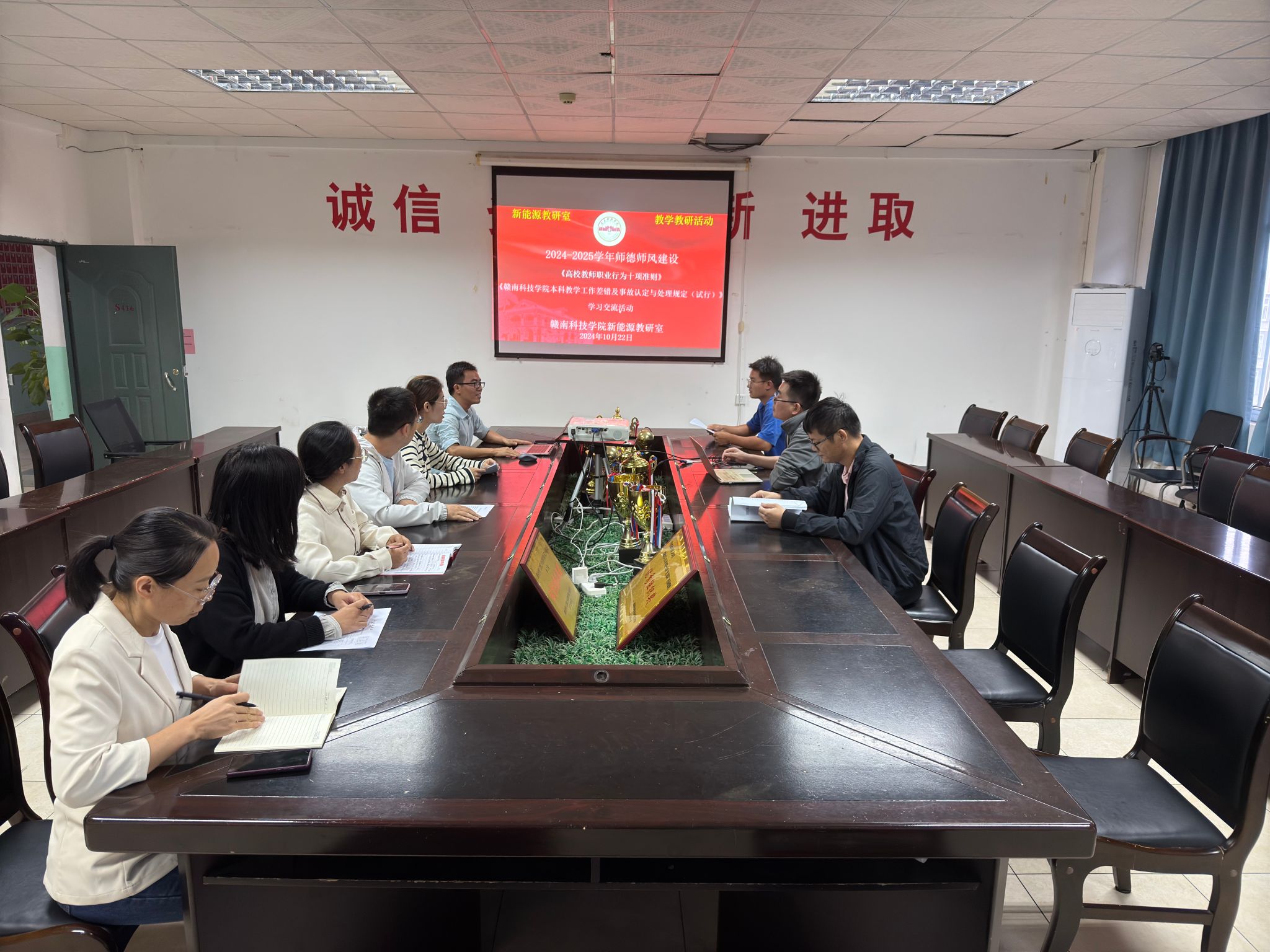本网讯:10月22日下午,智能制造与材料工程学院新能源教研室组织全体教师在工程楼S416会议室开展了本学年度“师德师风建设”的教学与研究主题活动。