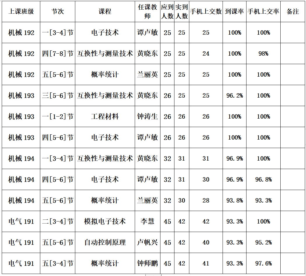 一、第五周抽查到课率情况通报